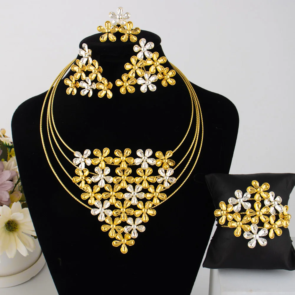 Ensemble de bijoux élégants éthiopiens, collier et boucles d'oreilles en forme de fleur brésilienne, bracelet et bague de luxe pour fête de dubaï, cadeau de fête des mères |