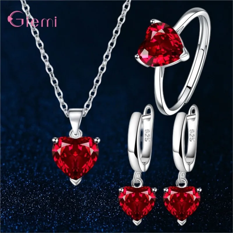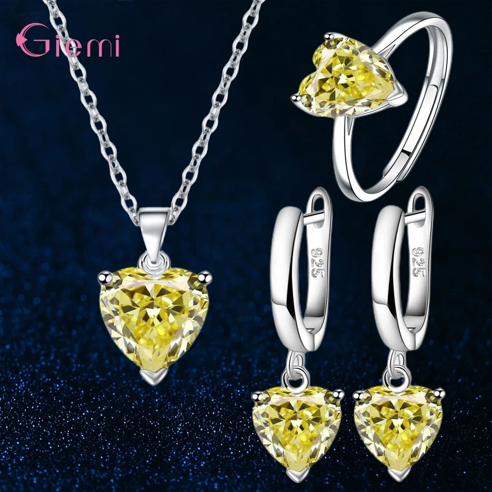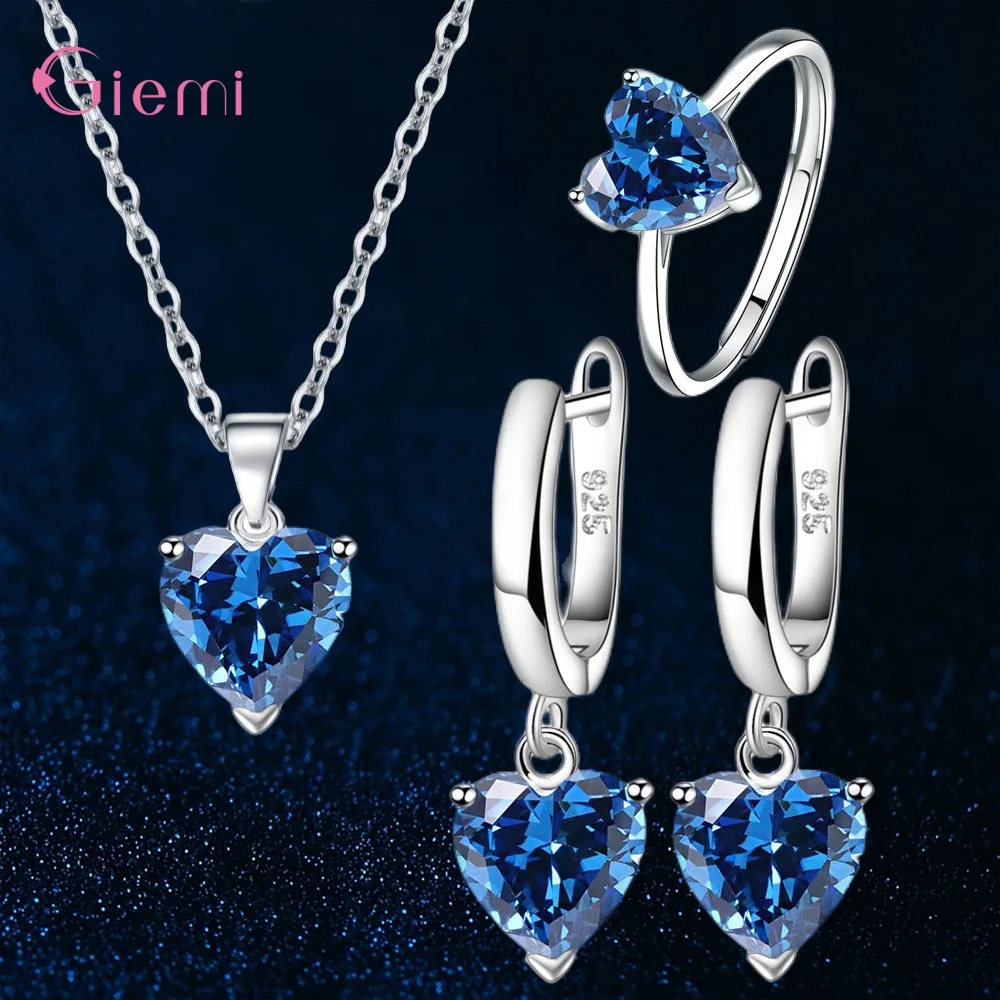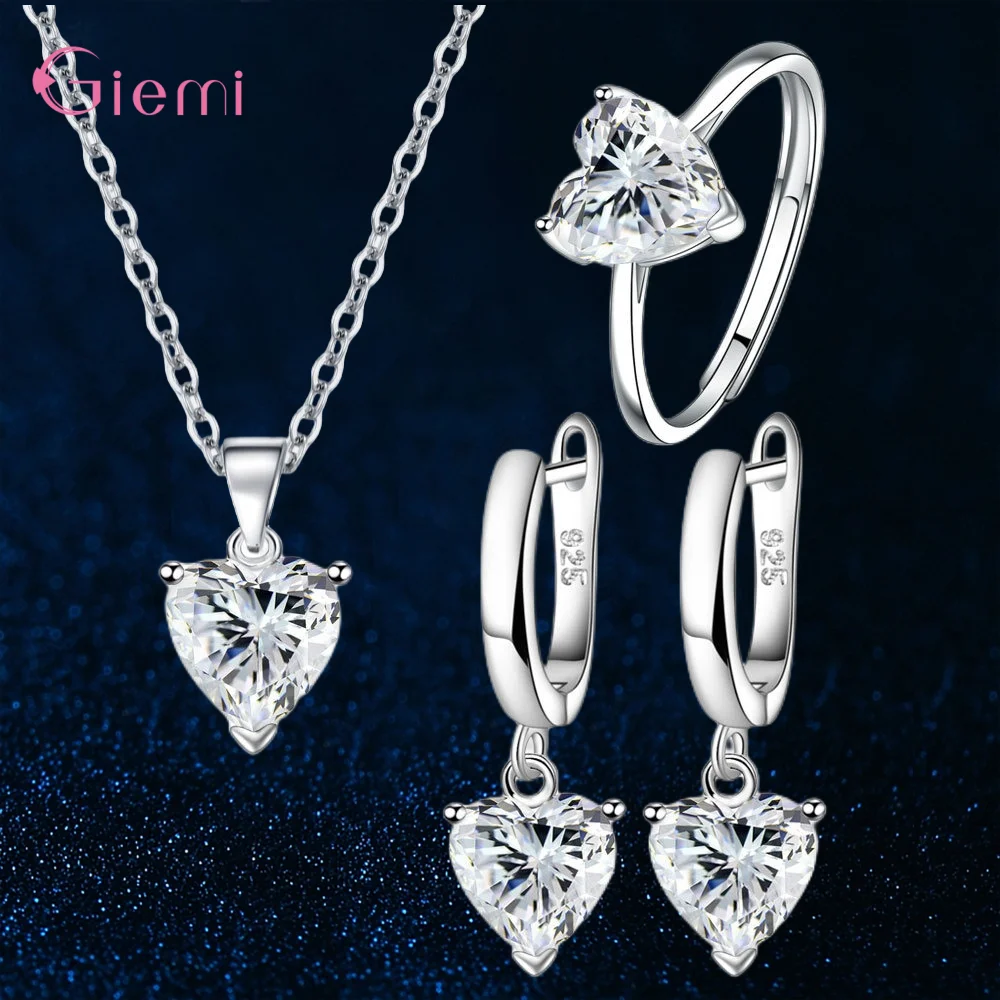 Ensemble de bijoux en argent 925, haut à la mode, cadeaux en cristal brillant, costume pour femmes et filles, pendentif, collier, boucles d'oreilles, bagues, offre spéciale |