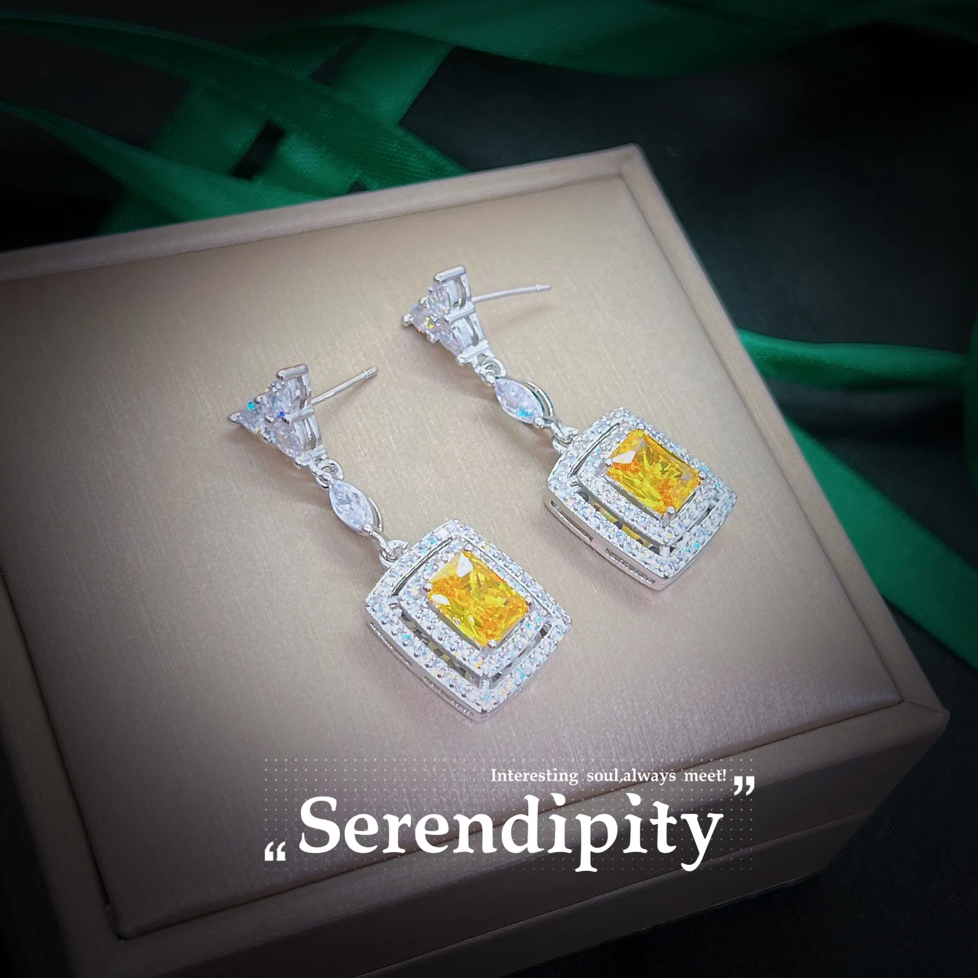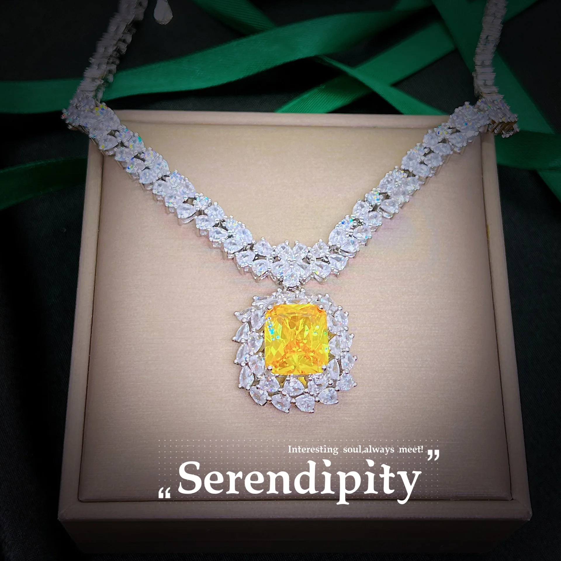 Ensemble de bijoux en argent imitation diamant jaune pour femme, pendentif brillant, colliers, matiques, boucles d’oreilles, patients, Uto AAA