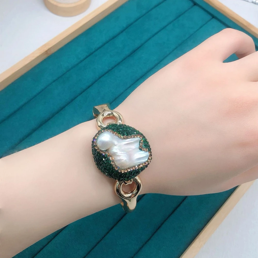 Ensemble de bijoux en cristal de perles d'eau douce naturelles pour femmes, Quartz irrégulier Baroque, bracelet complet en strass, bagues, ensembles de colliers à breloques |