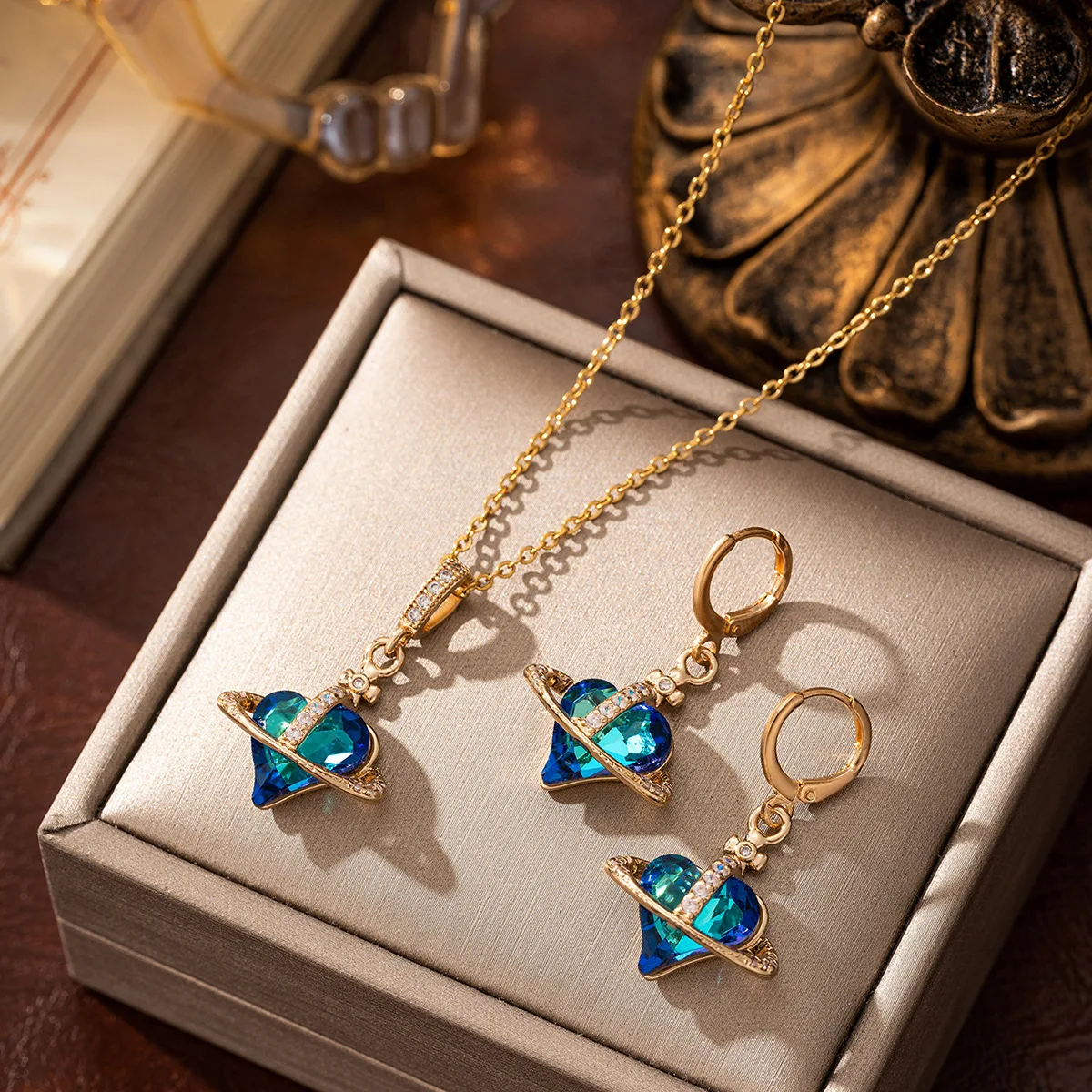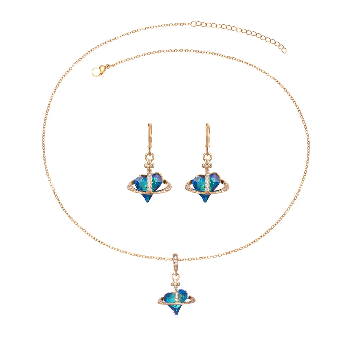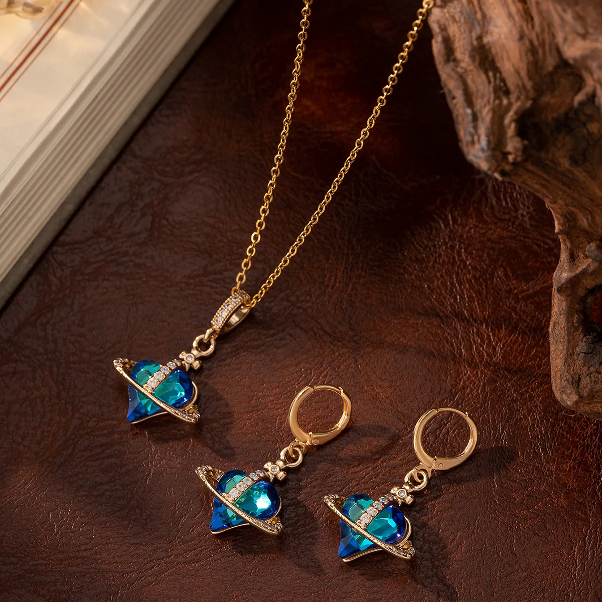 Ensemble de bijoux en cuivre plaqué or avec pierres géométriques en Zircon bleu, collier et boucles d'oreilles de luxe pour femmes, Accents et Design élégant |