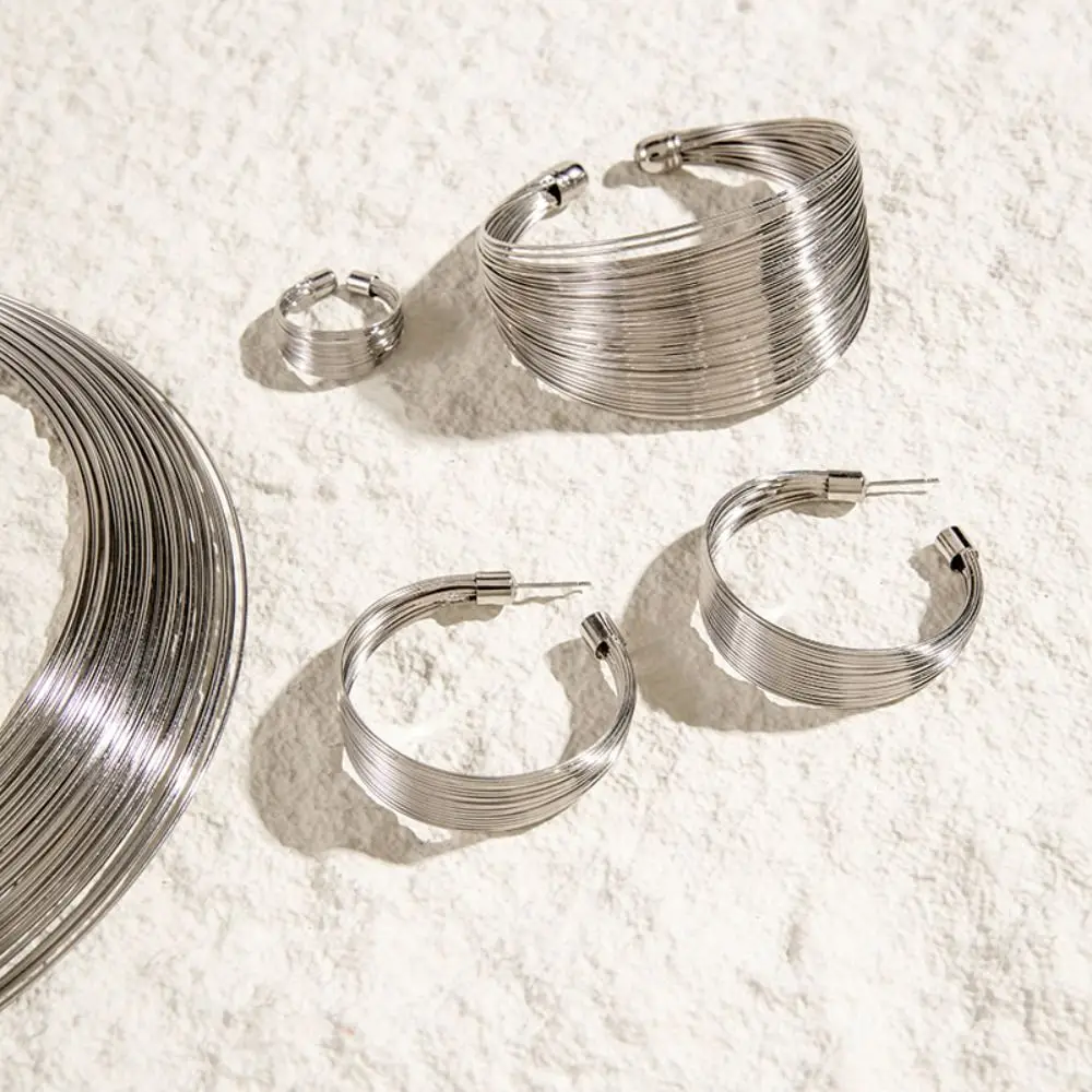 Ensemble de bijoux en fil métallique multicouche, boucles d'oreilles, bague, collier exagéré de Style coréen, accessoires de bijoux en alliage pour fête |
