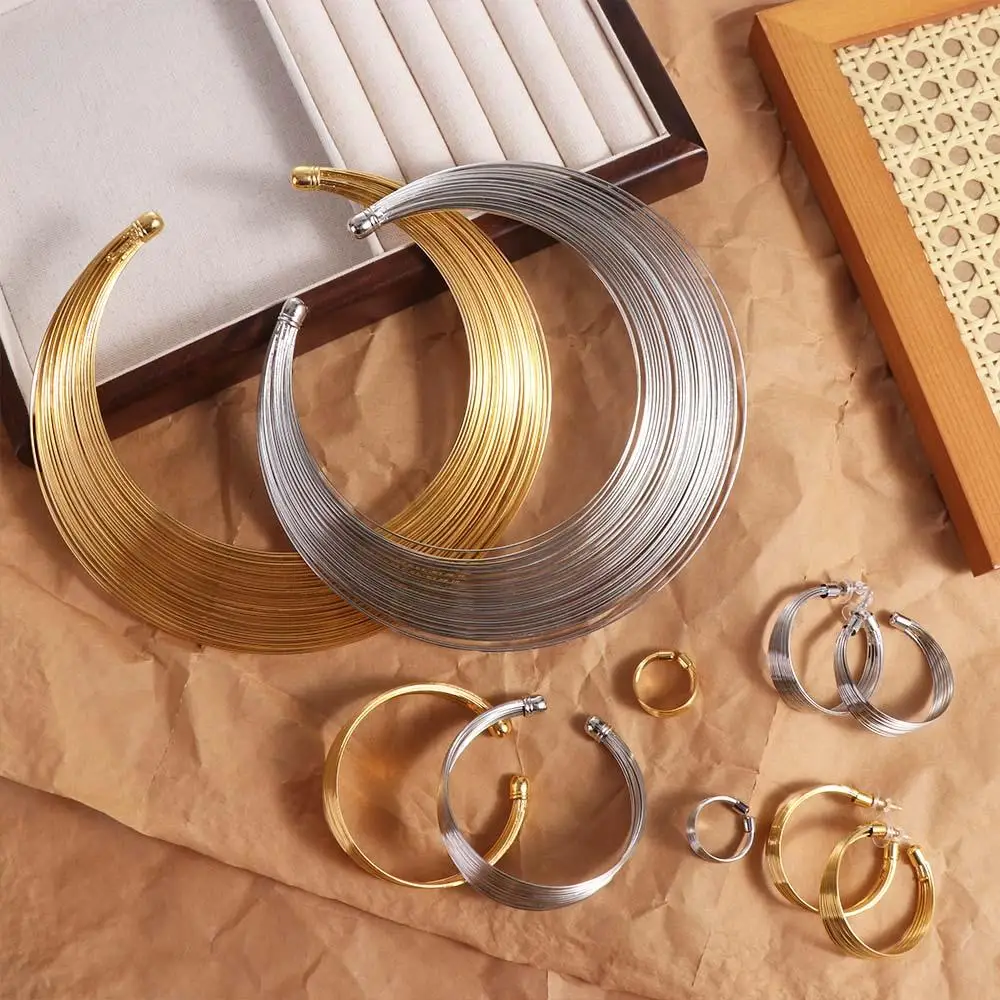 Ensemble de bijoux en fil métallique multicouche, boucles d'oreilles élégantes, bague, accessoires de bijoux, collier exagéré, cadeau en alliage de Style coréen |