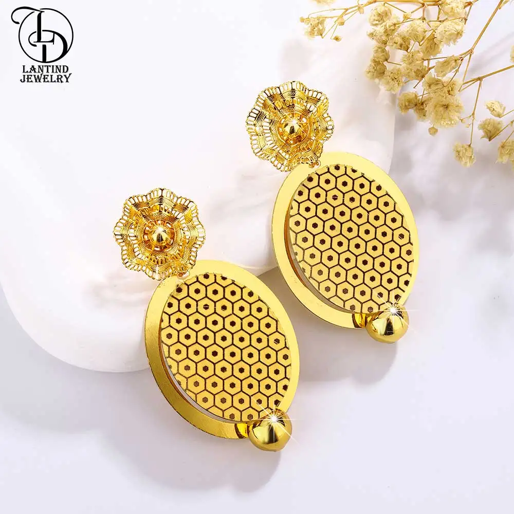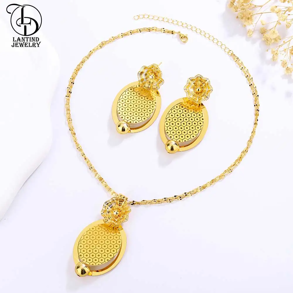 Ensemble de bijoux en maille nargéométrique plaqué or 24 carats pour dames, collier boule ronde, Moyen-Orient, élégant, boucles d'oreilles fleur, à la mode, mariage, Dubaï, As00049, 2 pièces |
