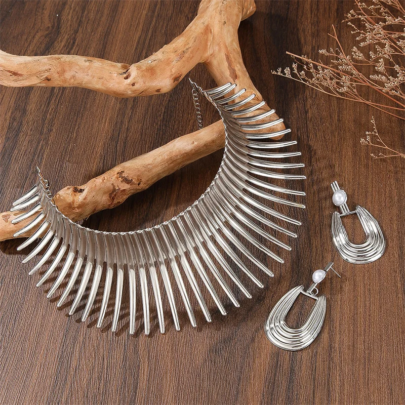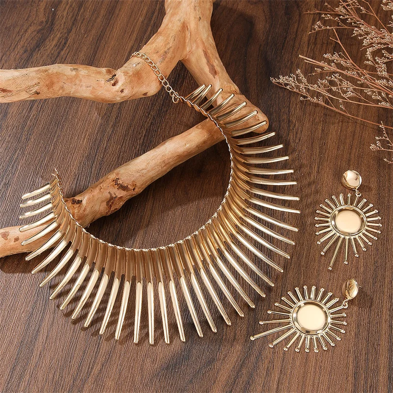 Ensemble de bijoux en métal couleur or, grand couple exagéré, ras du cou, boucles d'oreilles, bijoux, cadeaux Punk africains |