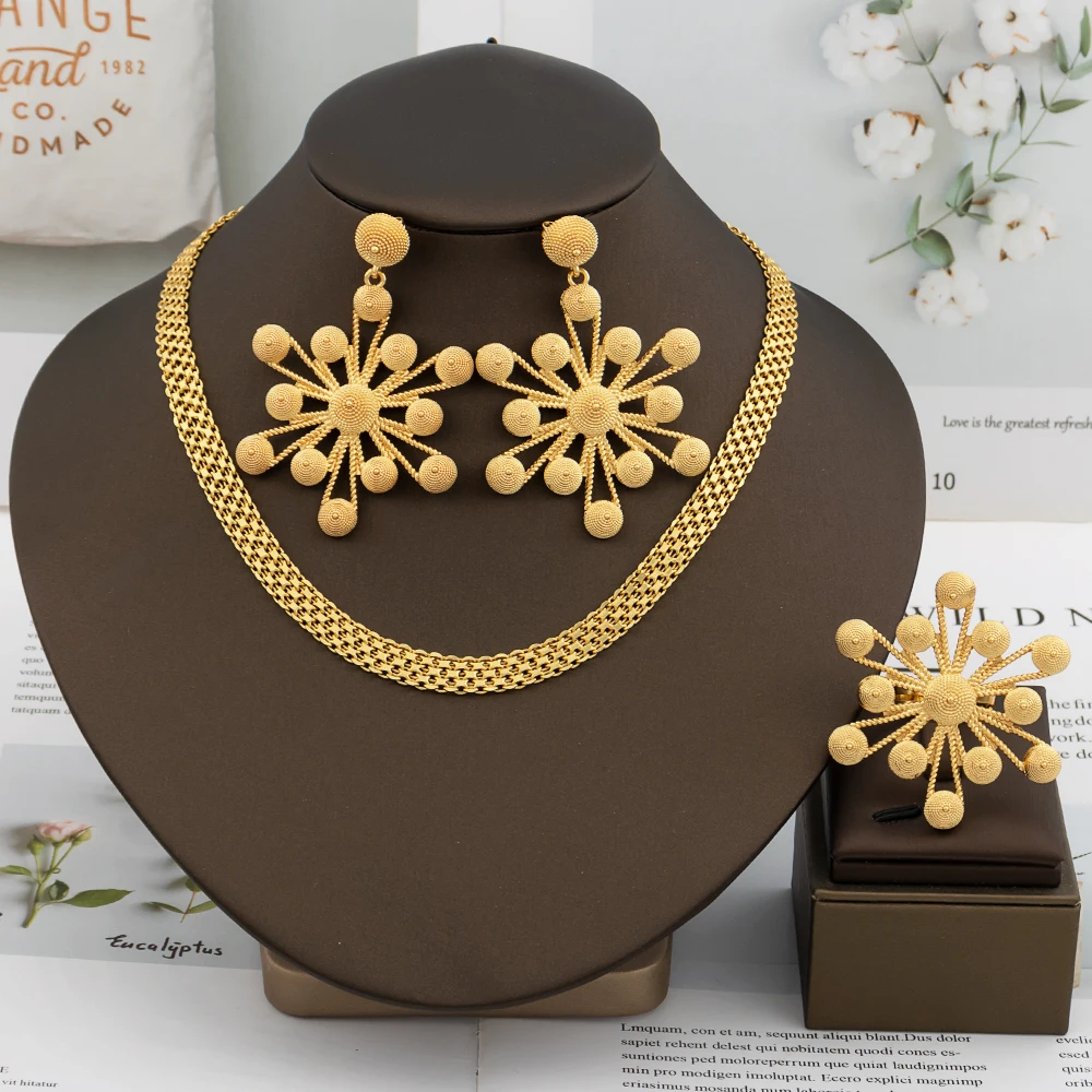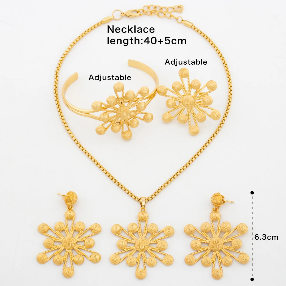 Ensemble de bijoux en or pour femmes, boucles d'oreilles éthiopiennes de Dubaï, pendentif, collier flocon de neige, manchette africaine, bracelet, bague, cadeau de bijoux pour patients |