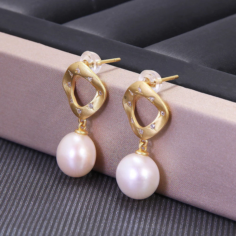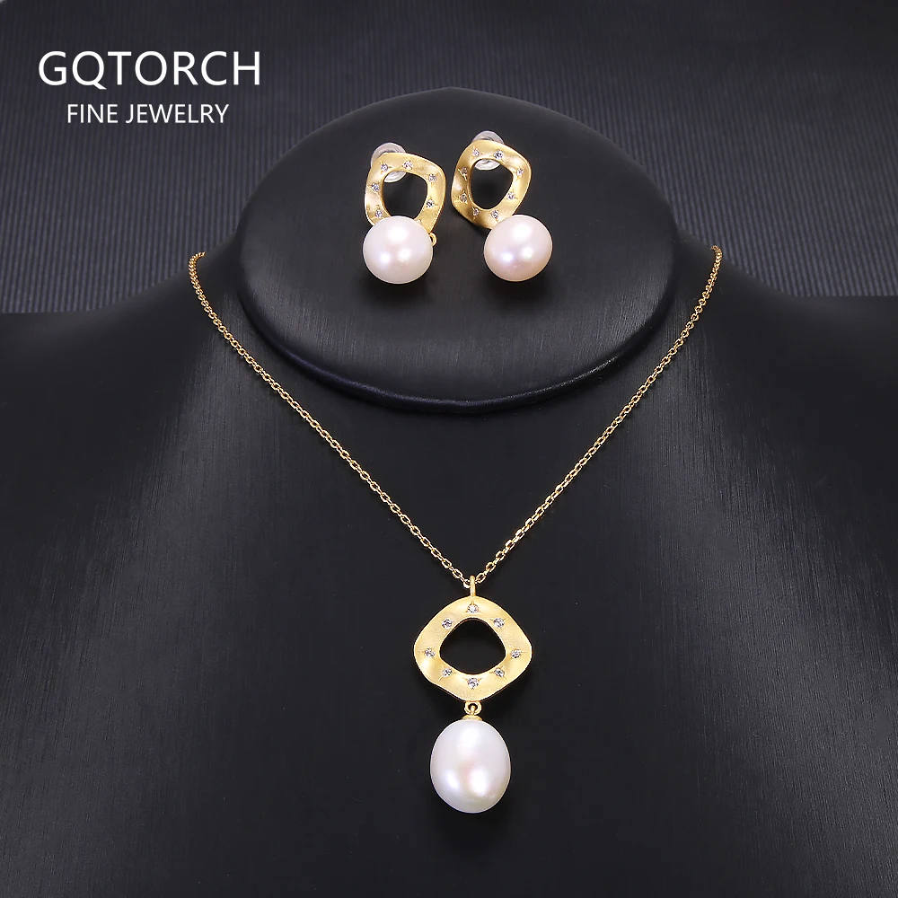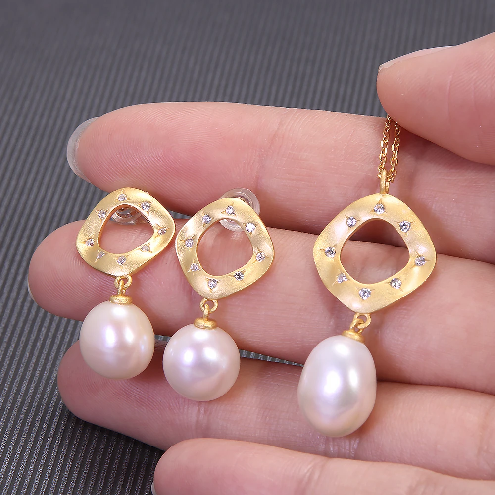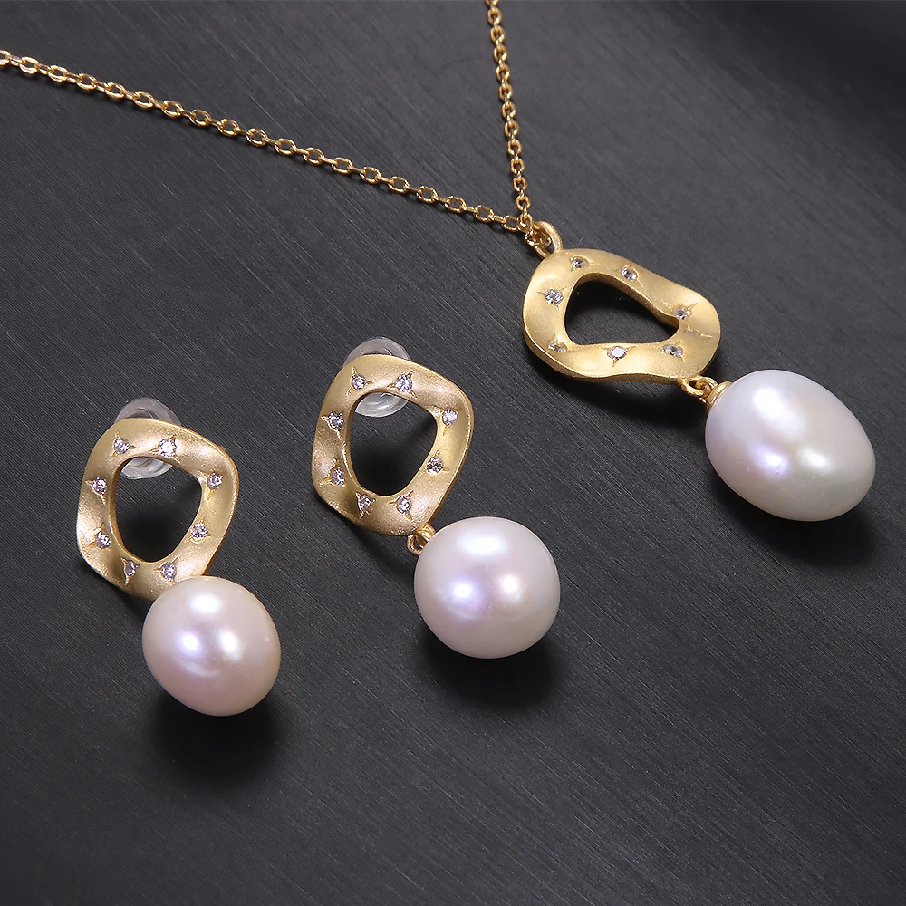 Ensemble de bijoux en perles d'eau douce naturelles, collier et boucles d'oreilles en argent S925 plaqué or, accessoires géométriques élégants, 256 |