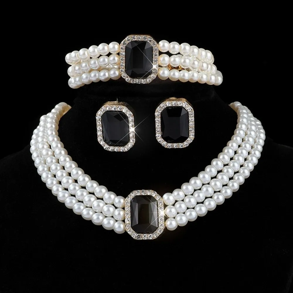 Ensemble de bijoux en perles d'imitation de pierres précieuses, ensemble de boucles d'oreilles et de bracelets en perles blanches, perles multicouches assorties, ensembles de bijoux de mariée |
