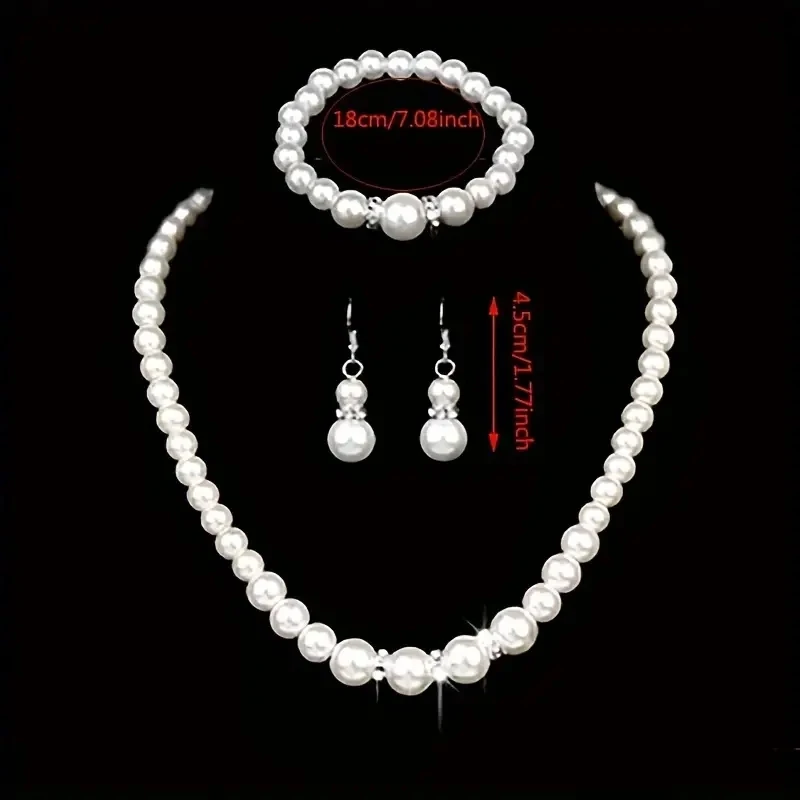 Ensemble de bijoux en perles pour femmes, 4 pièces, perles simulées, mode simple, boucles d'oreilles polyvalentes, colliers, Bracelets, ensemble de bijoux |
