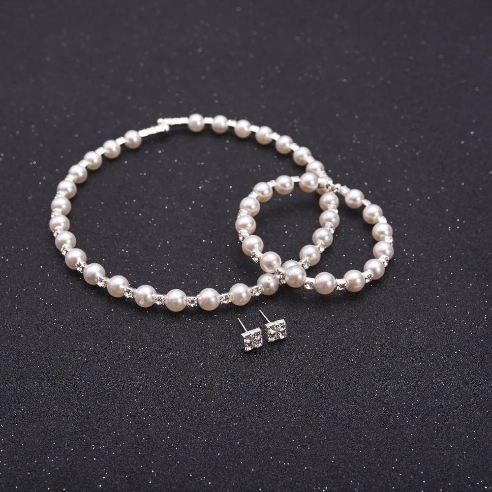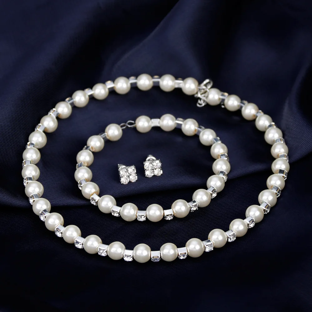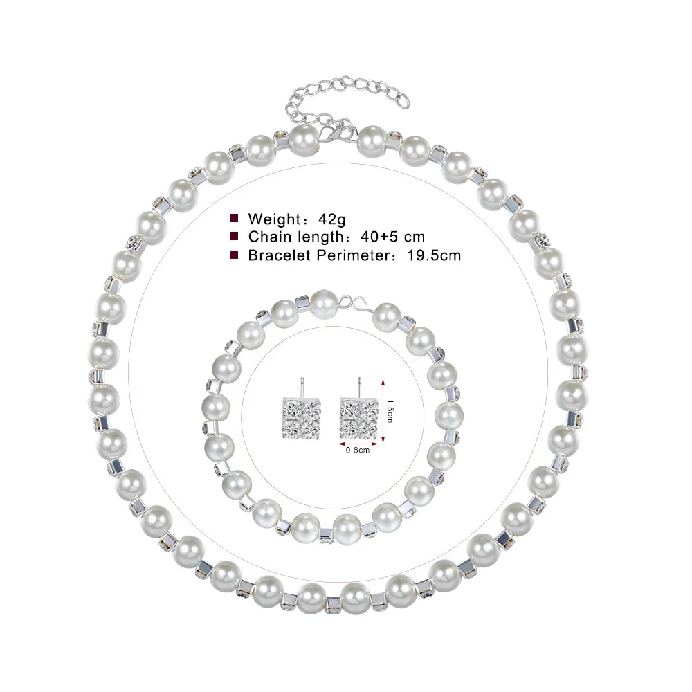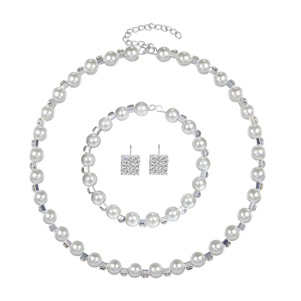 Ensemble de bijoux en perles pour mariée, collier et boucles d'oreilles en cristal plaqué argent, Bracelet, cadeau de fête |
