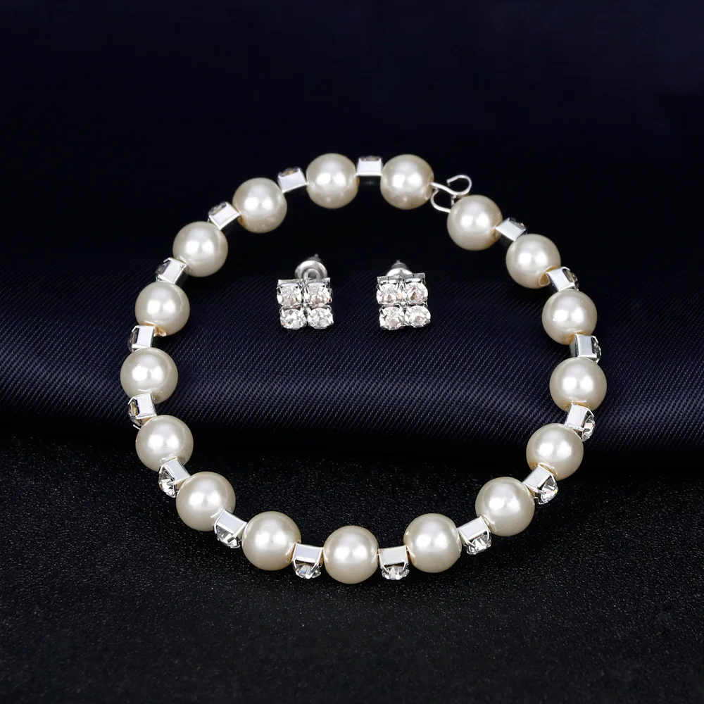 Ensemble de bijoux en perles pour mariée, collier et boucles d’oreilles en cristal plaqué argent, Bracelet, cadeau de fête