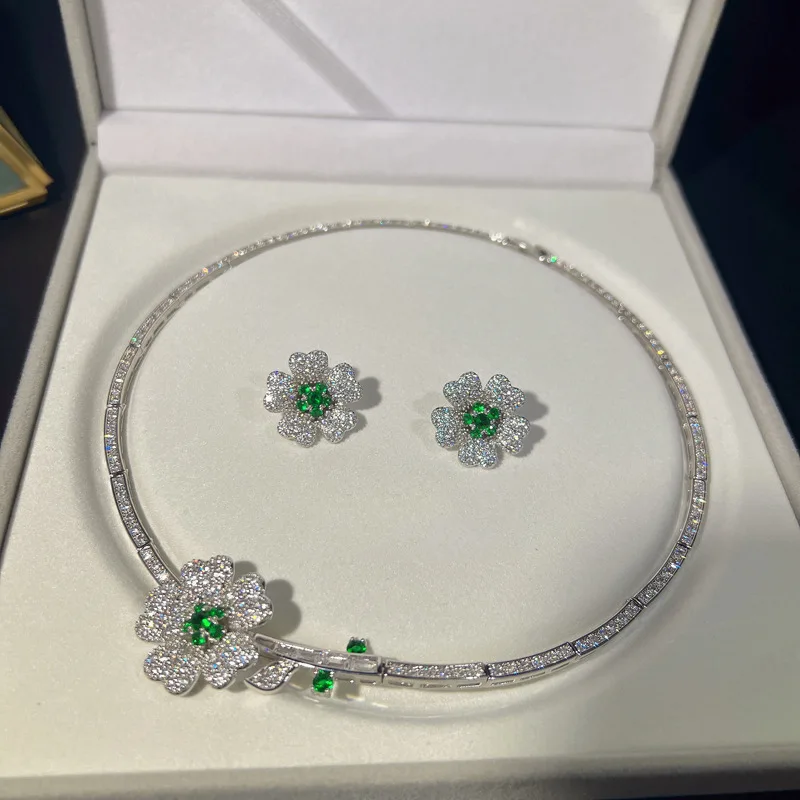 Ensemble de bijoux en zircone émeraude pour femmes, délicat et Noble, couleur argent 925, magnifique collier et boucles d’oreilles pour Banquet de mariée