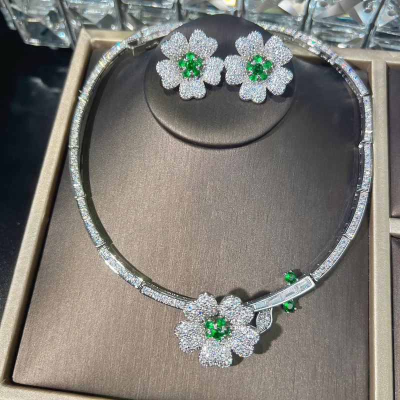 "Cet ensemble de bijoux en zircone émeraude est tout simplement magnifique! Les couleurs sont superbes et la finition est d'une grande qualité. J'ai porté le collier et les boucles d'oreilles lors d'un dîner de mariage, et ils m'ont apporté une touche d'élégance et de raffinement. Seul bémol, le fermoir du collier est un peu délicat à manipuler, mais cela n'entache en rien la beauté de ces bijoux. Je les recommande vivement à toutes les femmes qui cherchent des accessoires nobles et sophistiqués pour leurs occasions spéciales."