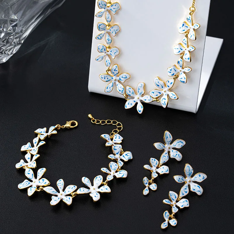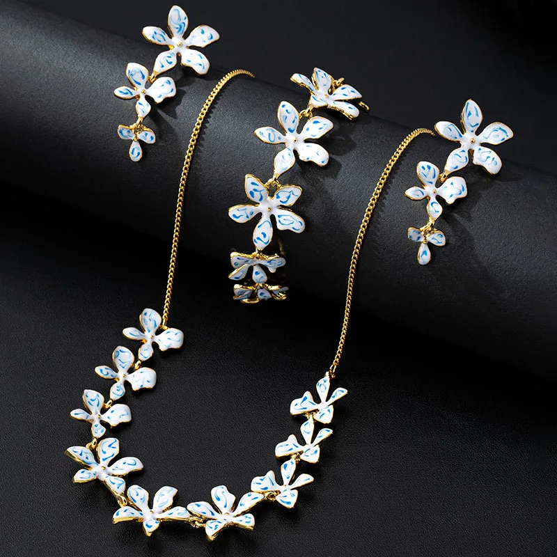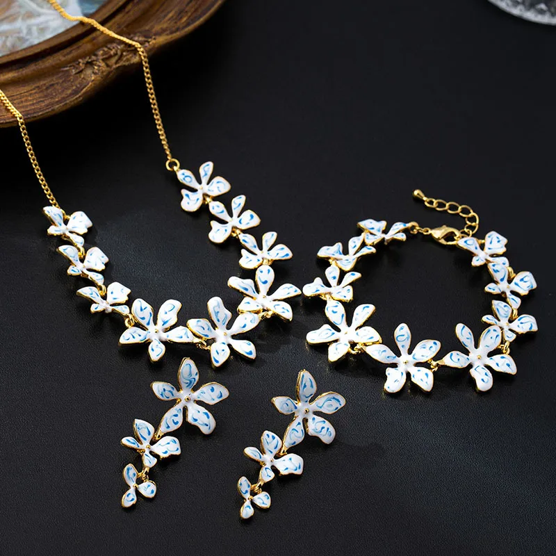 Ensemble de bijoux plaqués or 18 carats pour femmes, Design classique, collier brillant, boucles d’oreilles et Bracelet à fleurs, ensemble de 3 pièces à la mode, M237