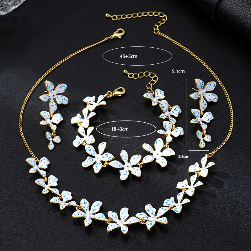 Ensemble de bijoux plaqués or 18 carats pour femmes, Design classique, collier brillant, boucles d'oreilles et Bracelet à fleurs, ensemble de 3 pièces à la mode, M237 |