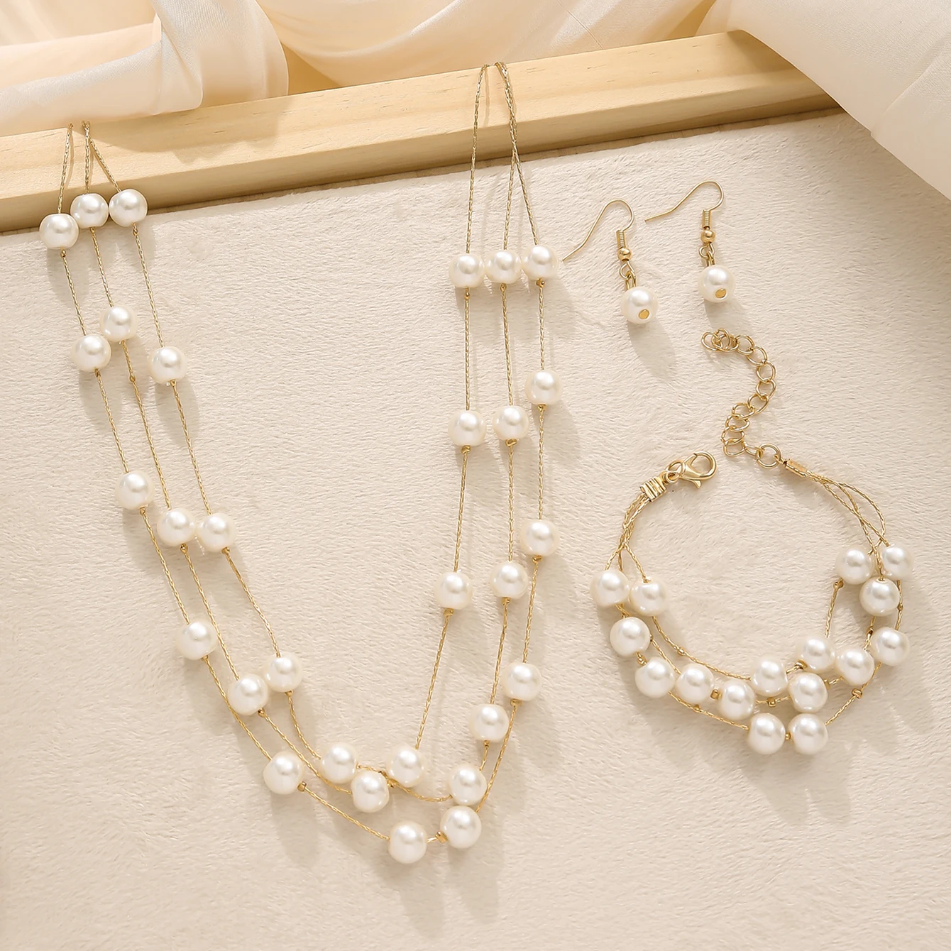 Ensemble de bijoux pour femmes, élégant, multicouche, empilé, Imitation de perles, Bracelet, boucles d’oreilles, parfait, usage quotidien, cadeau de fête