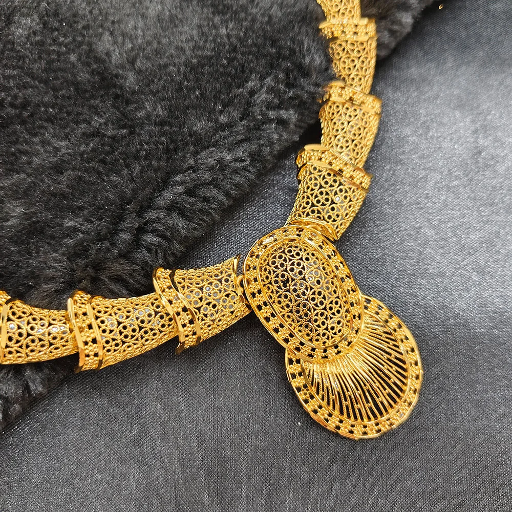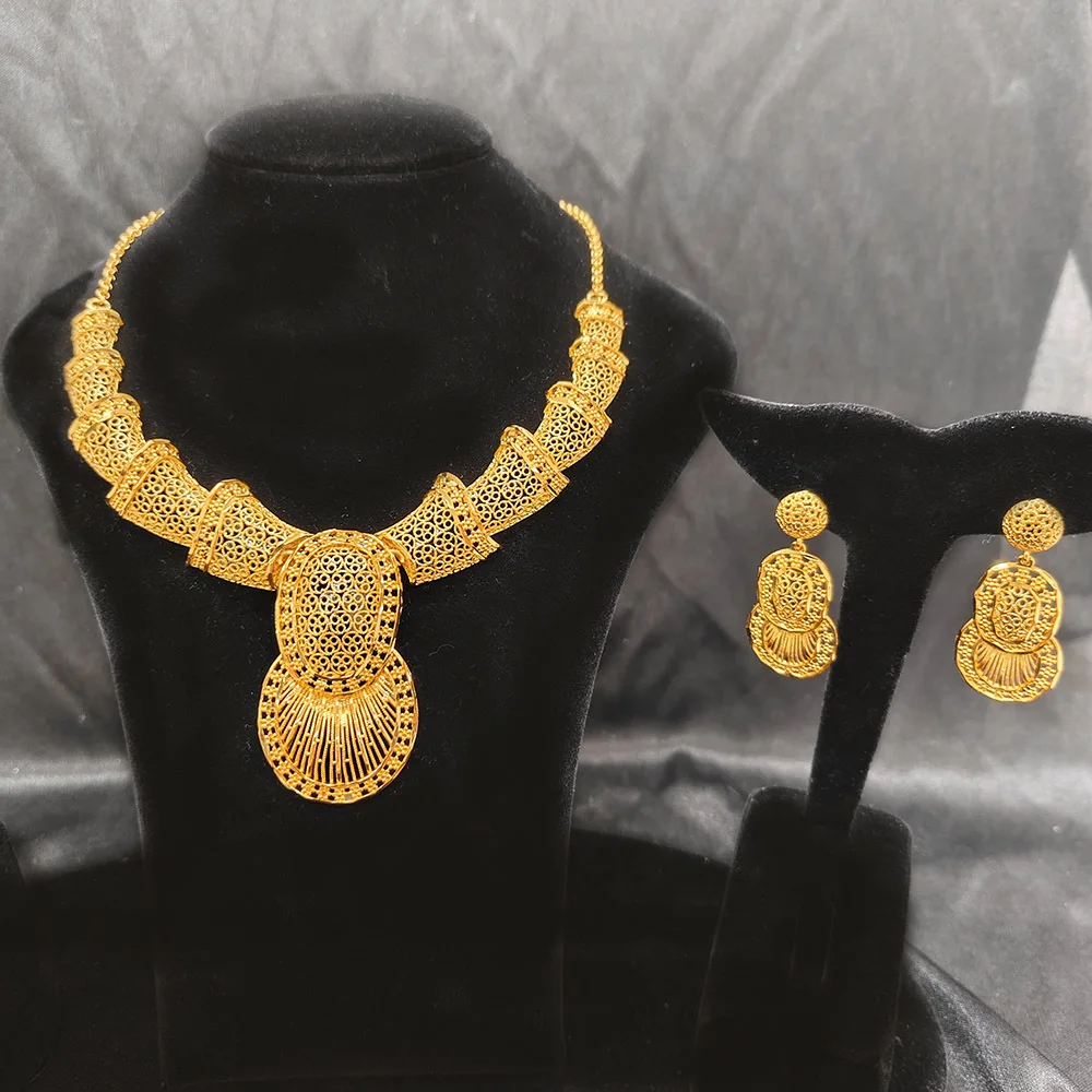 Ensemble de bijoux pour femmes, plaqué or 24 carats, 2 pièces, avec Bracelet, boucles d'oreilles, collier, bague de Jamila Dubai, alliage de cuivre, Design traditionnel |