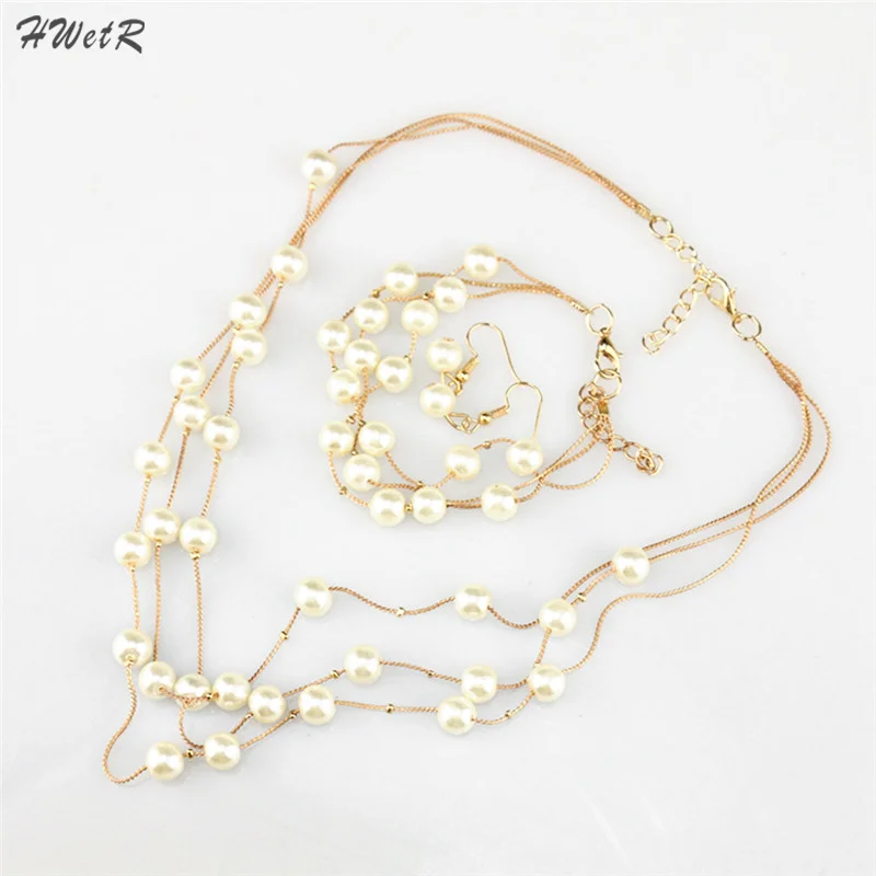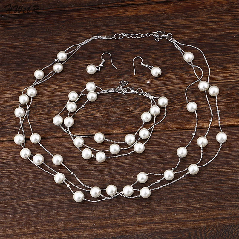 Ensemble de collier de perles simples pour femmes, bracelet assressenti, boucles d’oreilles, accessoires de fête de fiançailles, bijoux de mariage à la mode, 216.239.