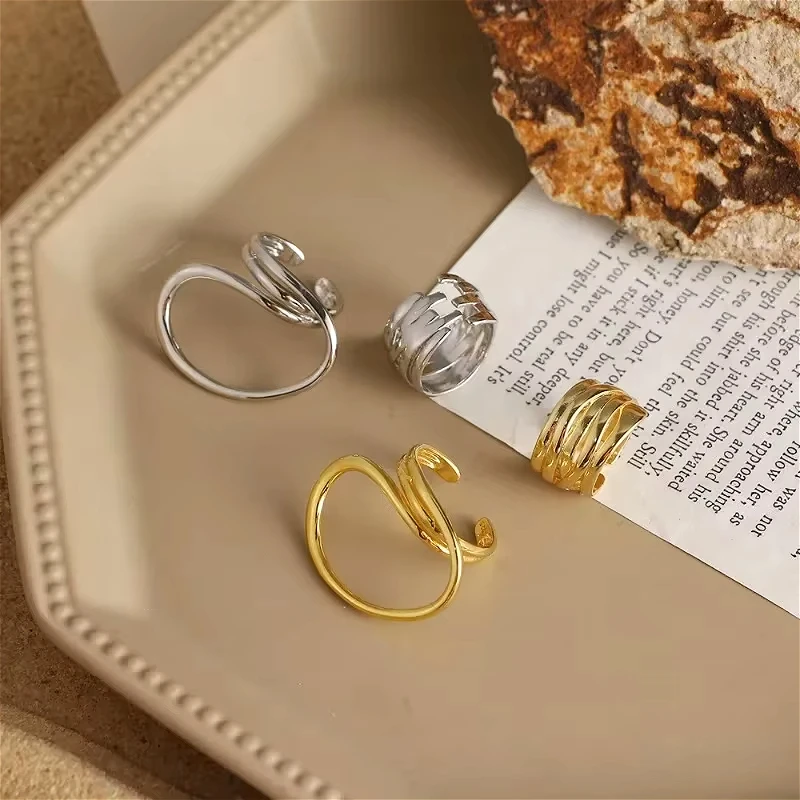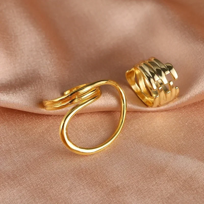 Ensemble de matiques géométriques déformées vintage pour femmes, grandes matiques en argent, lignes uniques, bijoux de doigt, cadeau d’anniversaire, document