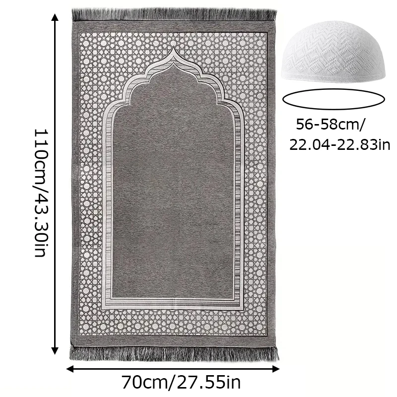 Ensemble de Prière Musulmane avec Perles de Prière et Chapeau Kufi pour Homme, Couverture de Transport Islamique, Cadeaux du Ramadan, 3 Pièces |