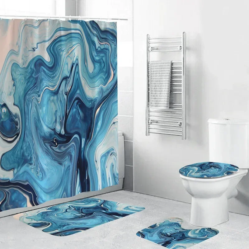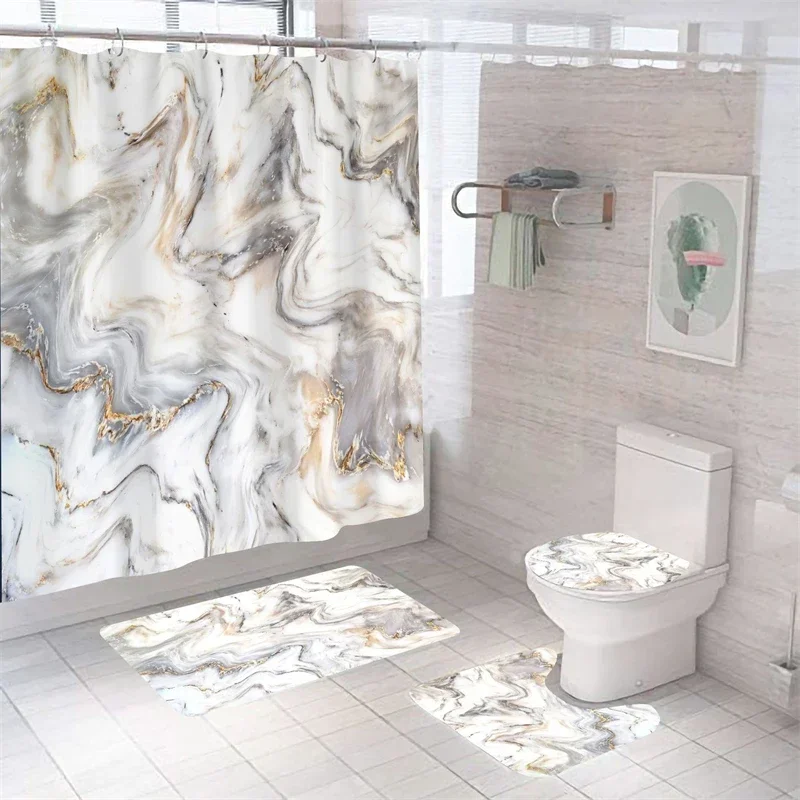 Ensemble de rideaux de douche en marbre 3D de luxe, tissu Polyester, rideaux de salle de bain imperméables, tapis de couverture de toilette de bain imprimé de Style moderne