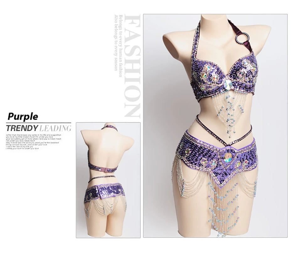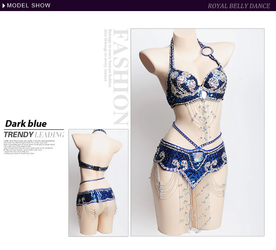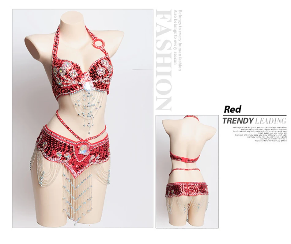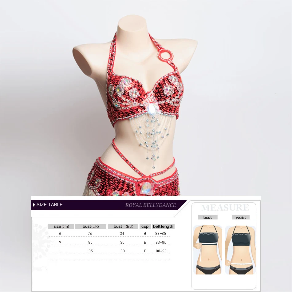 Ensemble de soutien-gorge et ceinture de danse du ventre pour femmes adultes, broderie de perles de biscuits faites à la main, accessoires de scène de danse à bande, 2 pièces |