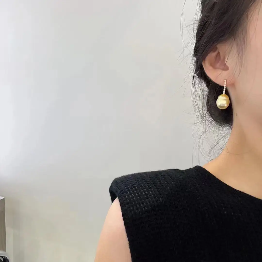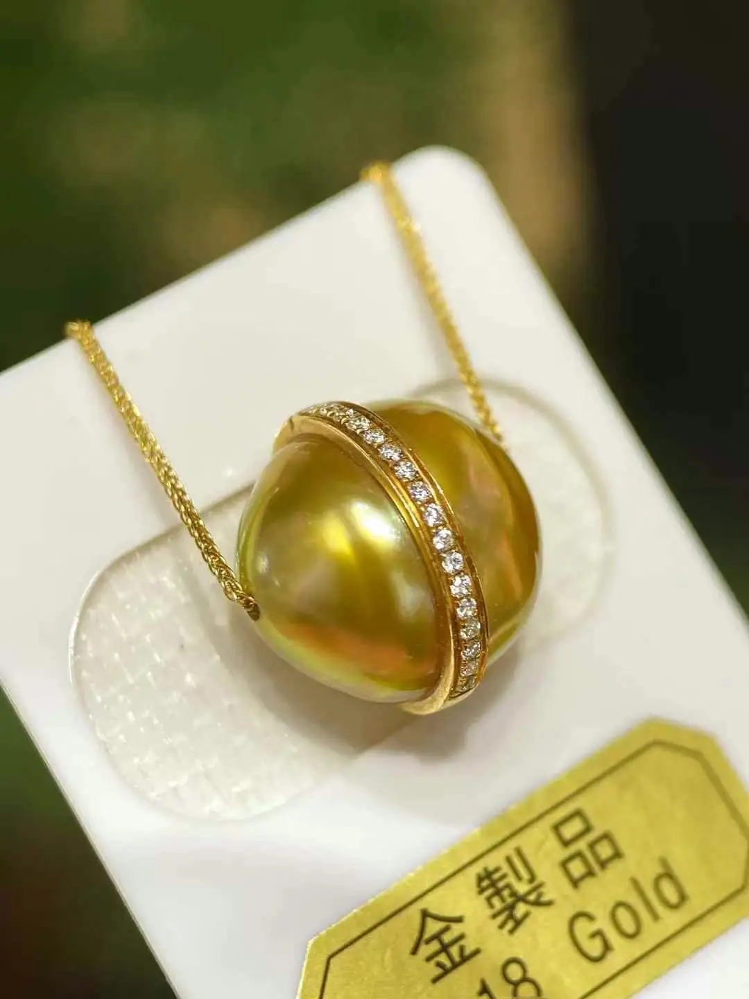 Ensemble d'or de lecture personnalisé 14K/18K, bijoux en perles baroques dorées de la mer du sud, diamant véritable sur mesure, un de genre, bijoux très fins |