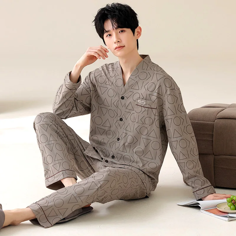 Ensemble pyjama de style kimono japonais pour hommes – Tissu en coton à carreaux bleus avec boutons sur le devant, poches et ceinture élastique L-4XL |