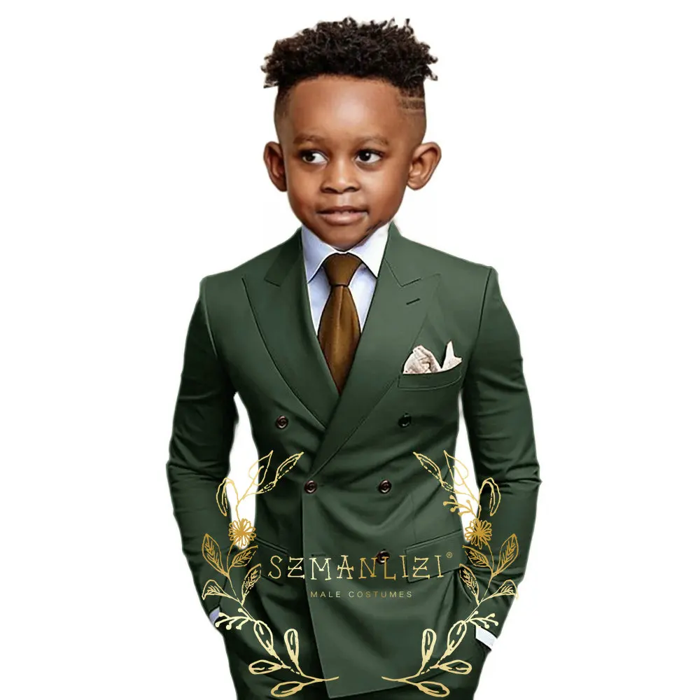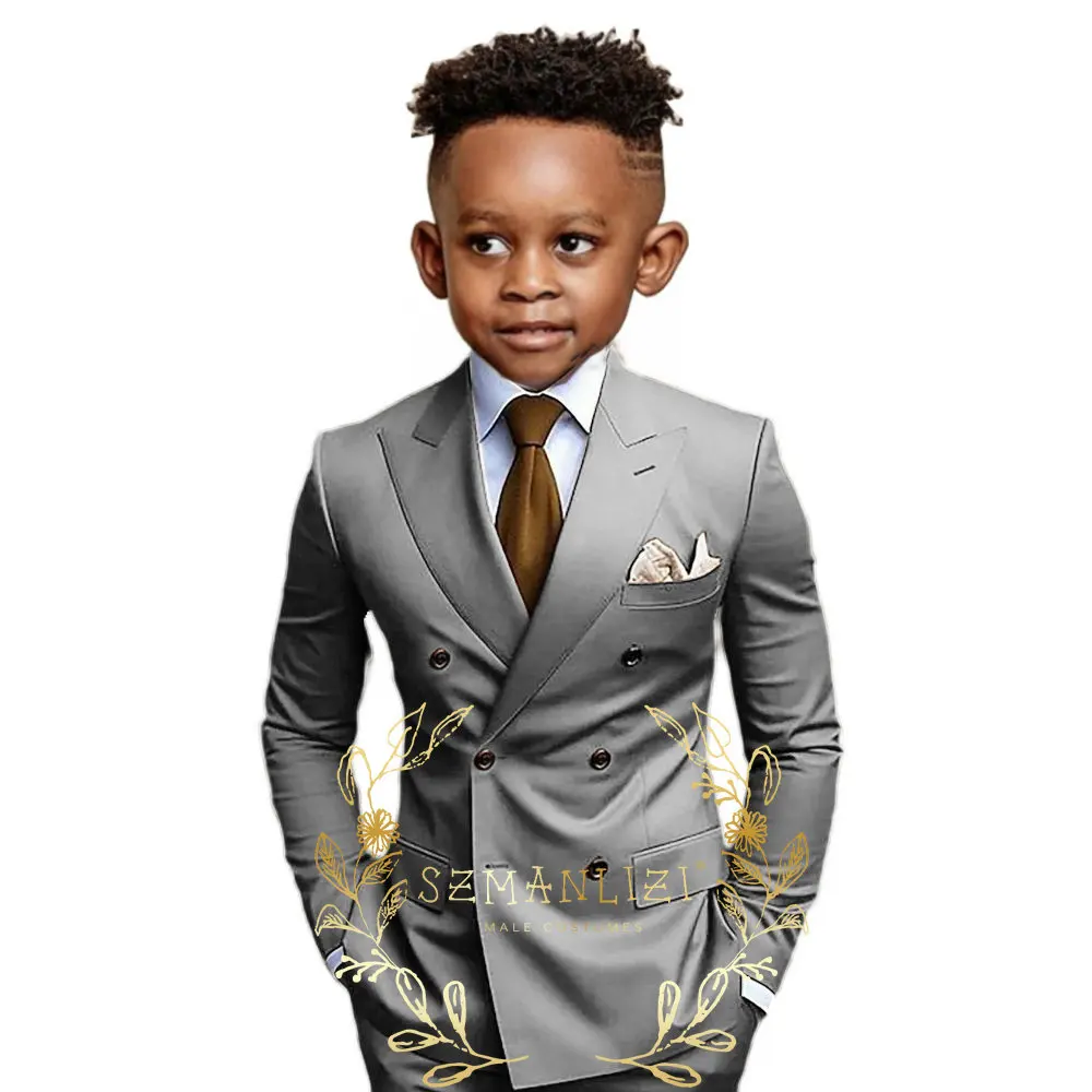 Ensemble veste et pantalon à double boutonnage pour garçons, smoking formel, blazer taille personnalisée pour enfants, style d'affaires, marron imbibé, mariage, 2 pièces |