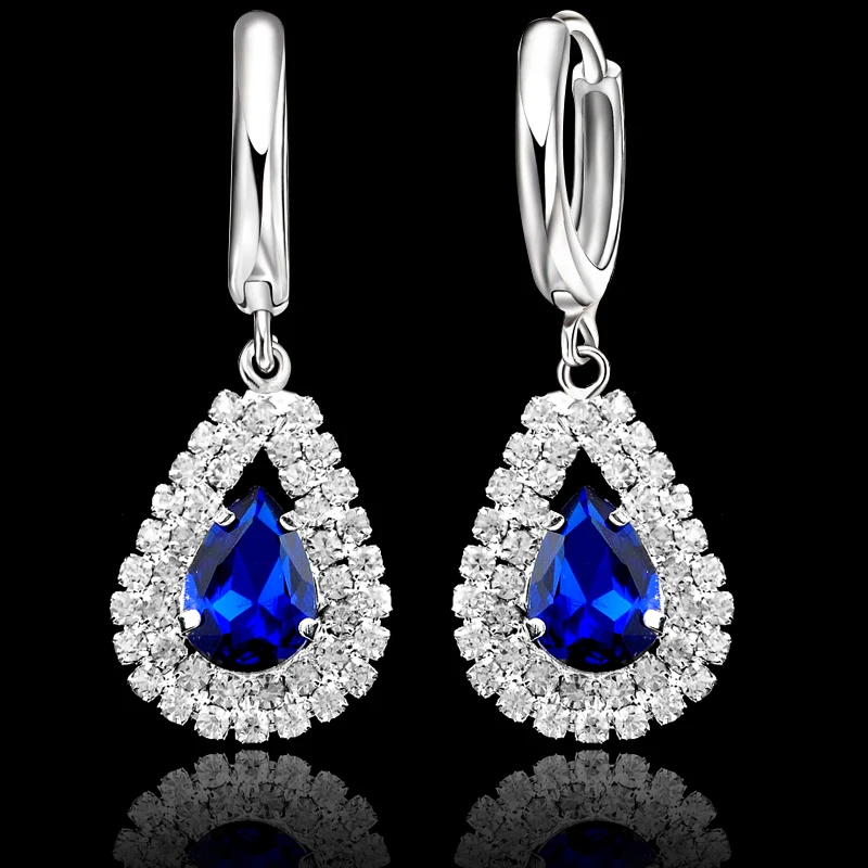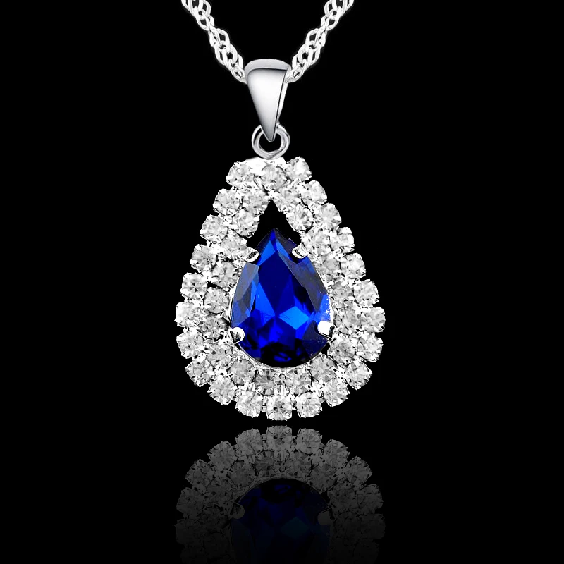 Ensembles de bijoux de mariage élégants en argent Sterling 925 pour femmes, goutte d'eau Fine, pendentif de fiançailles en cristal, collier et boucles d'oreilles |
