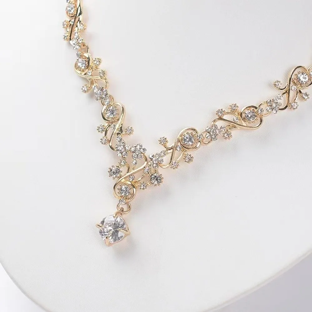Ensembles de bijoux de mariée en strass, doré brillant, exquis, breloque douce, collier et boucles d'oreilles réglables |