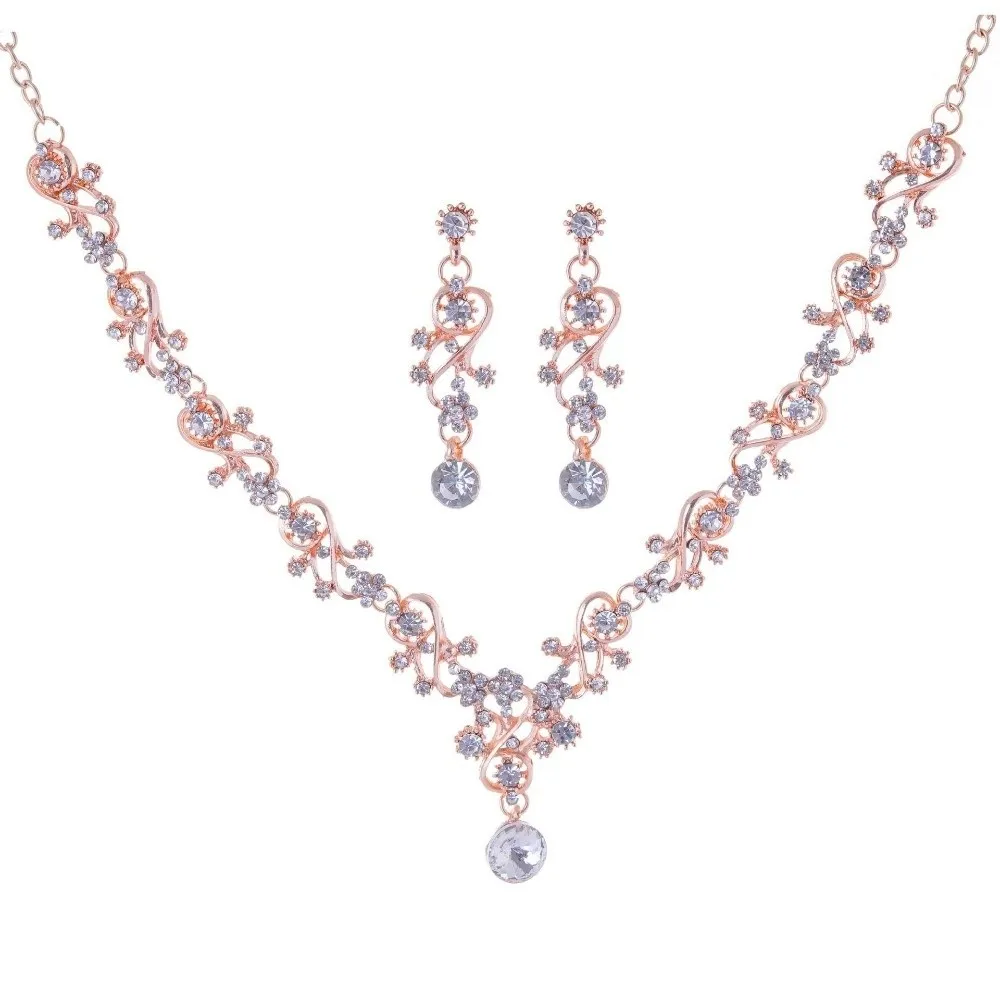 Ensembles de bijoux de mariée en strass, doré brillant, exquis, réglable, collier à breloques douces, boucles d’oreilles