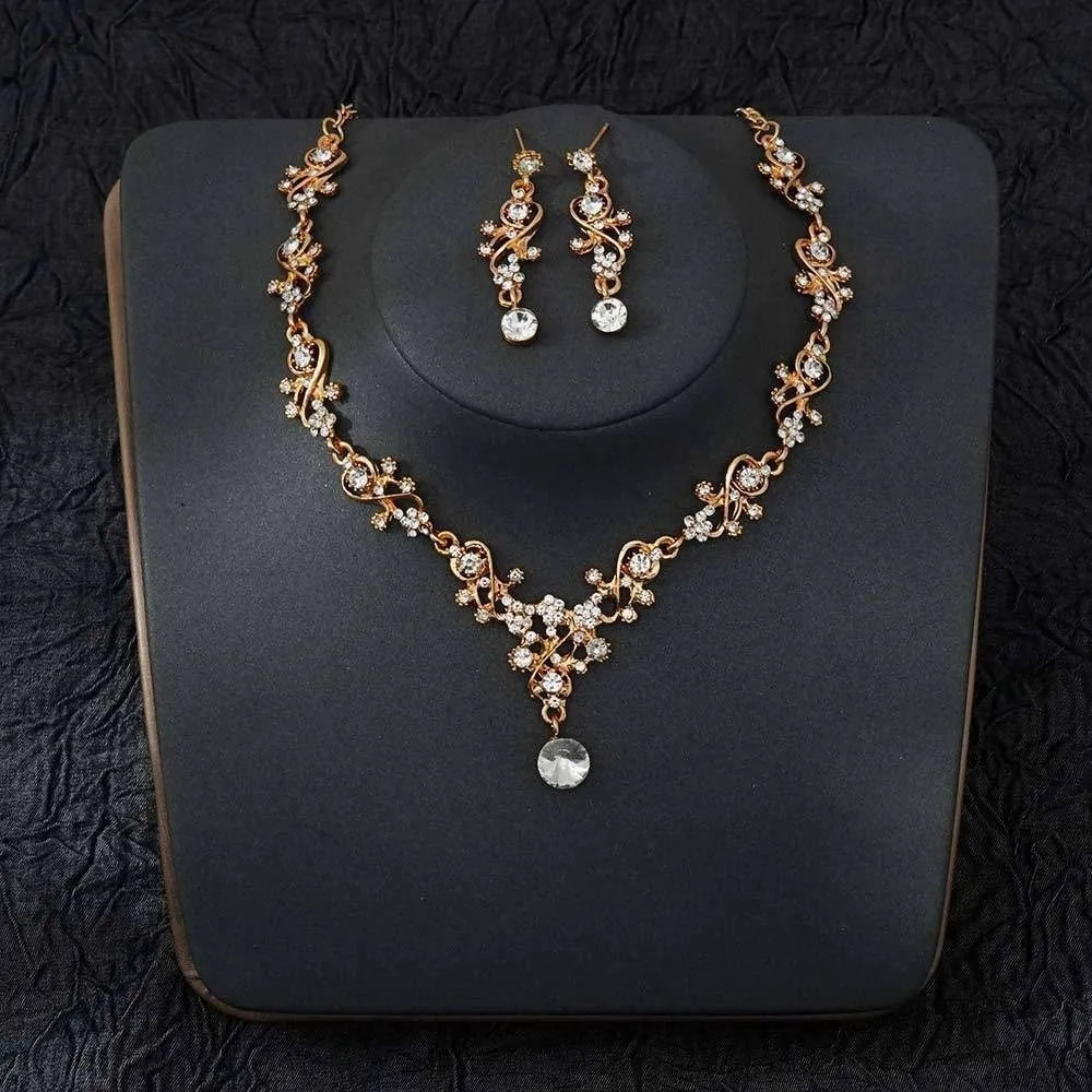 - Ensemble de bijoux de mariée élégant et tendance avec des éléments en strass dorés