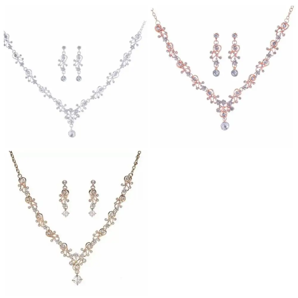 Ensembles de bijoux de mariée en strass, ensembles de bijoux exquis réglables dorés, ensemble de boucles d'oreilles et collier à breloques esthétiques |