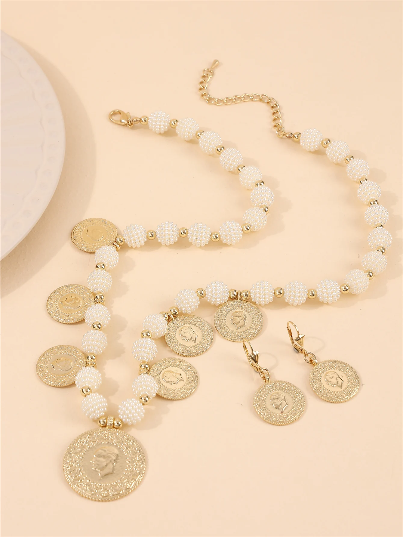 Ensembles de bijoux pour femmes en perles, colliers et boucles d'oreilles, luxueux, Vintage, usage quotidien, accessoires de mariée/mariage/Festival |