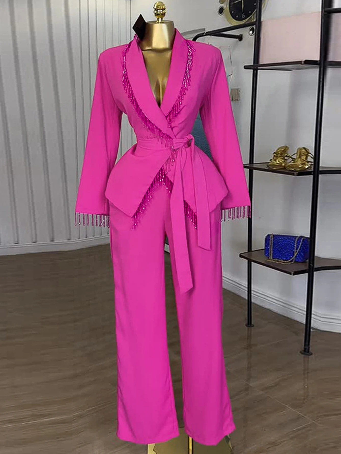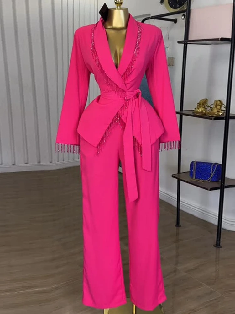 Ensembles deux pièces pour femmes, ensemble pantalon de déclaration avec détails à franges, idéal pour les jours d'anniversaire, les soirées et les événements formels |
