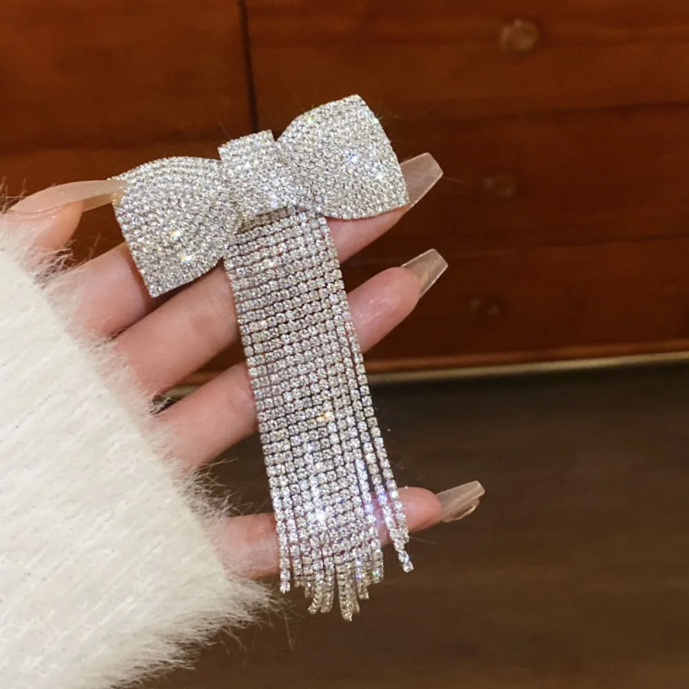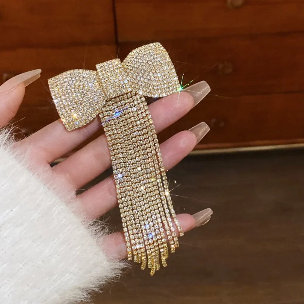 Épingle à cheveux à franges avec nœud en biscuits pour femmes, pince à cheveux de tempérament de mode, lumière coréenne, luxe, or, argent, document, accessoires pour cheveux |