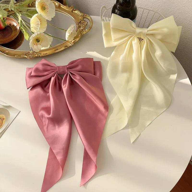 Épingle à cheveux avec gros nœuds en ruban de Satin de couleur unie, Clips de printemps, accessoires pour cheveux pour femmes et filles, couvre-chef d'été coréen tendance 2023 |