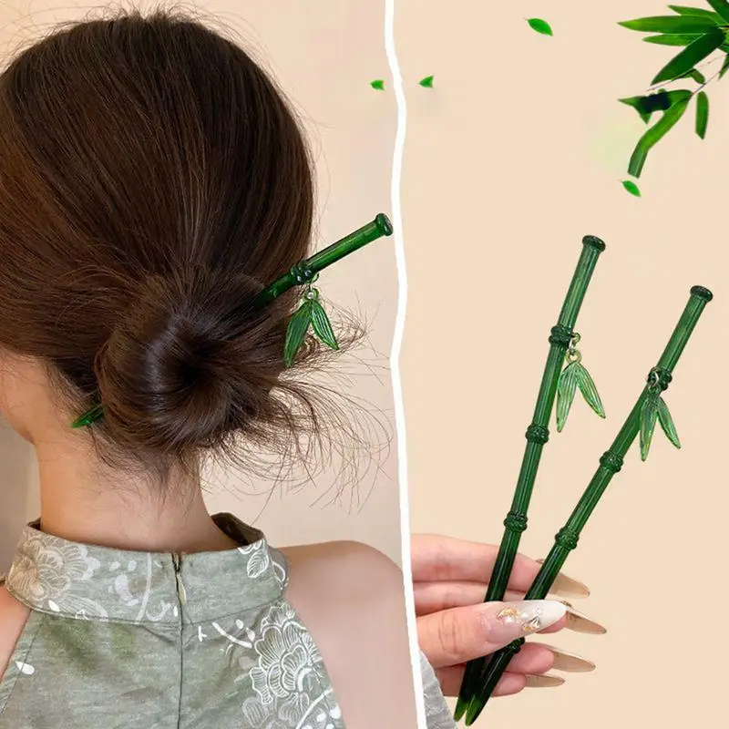 Épingle à cheveux chinoise décorative en forme de bambou, baguettes pour femmes, épingles porte-chignon, couvre-chef en résine, épingle à cheveux pour affichage d’art du thé