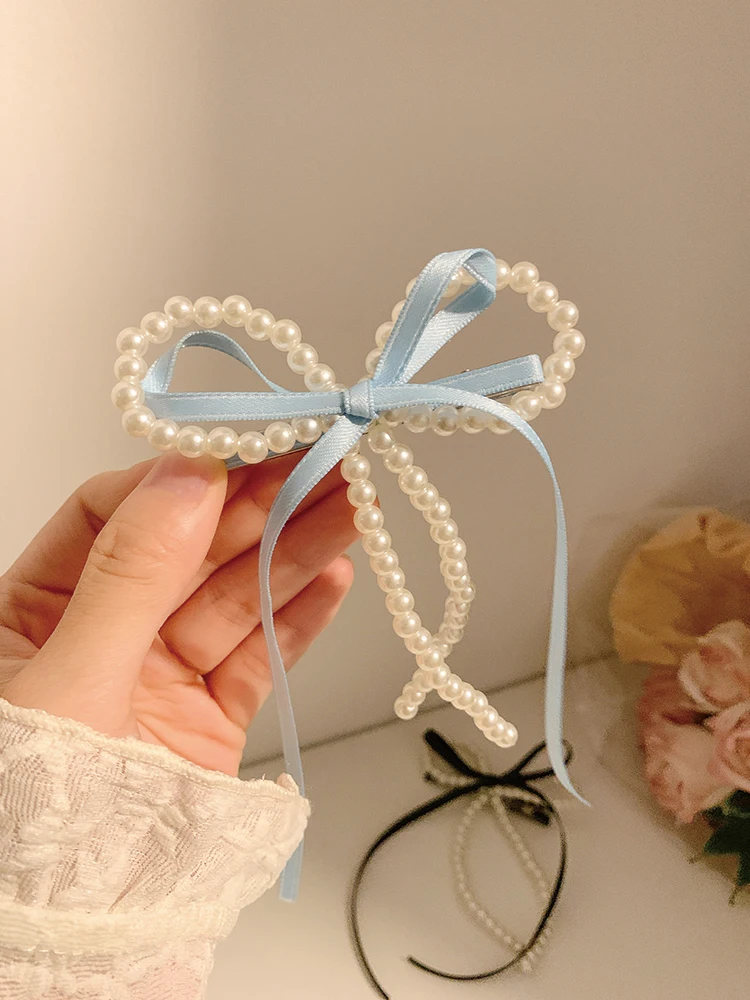Épingle à cheveux de style ballet pour femme, nœud perlé, ruban, sens avancé, style coréen, tête arrière, cuillère, bec de canard, coiffure d’été