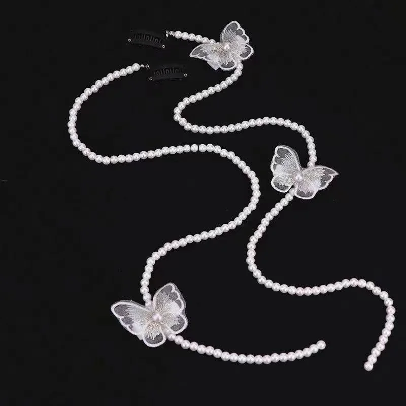 Épingle à cheveux tressée en perles pour femmes, élégante coréenne, outil de modélisation de mode, chaîne de perles tressées, pince à cheveux papillon, accessoires |