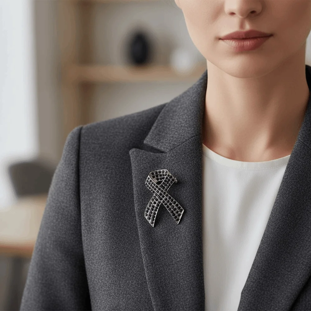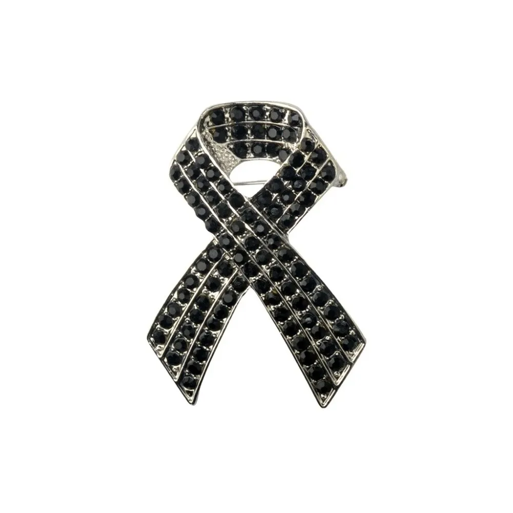 Épingle à ruban noir en cristal strass, épingle commémorative pour fonds de sensibilisation au Cancer de mélancome, épingle à revers Vintage |