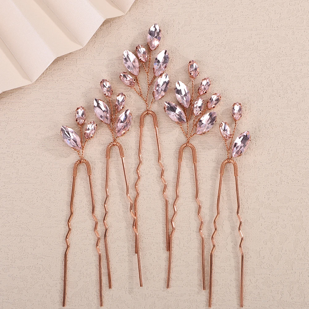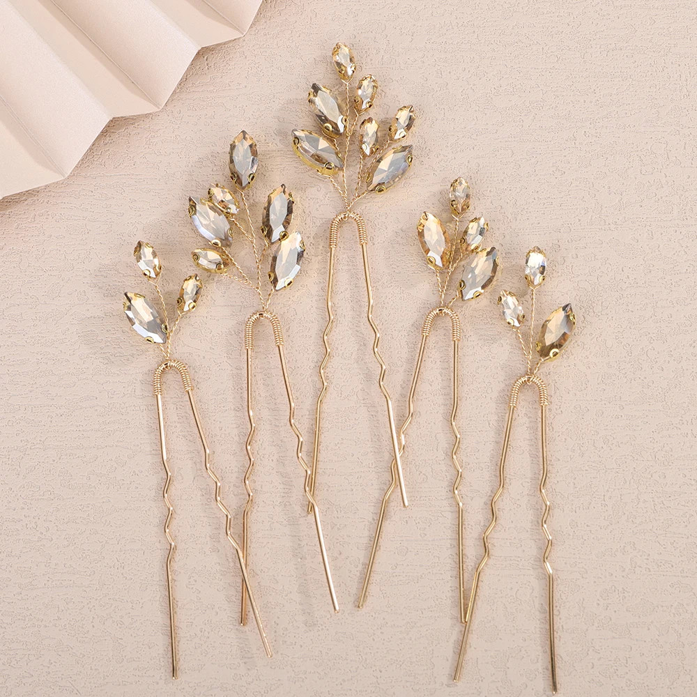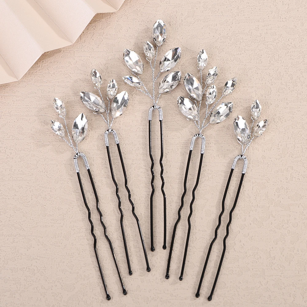 Épingles à cheveux de mariée en strass pour femmes, 5 pièces, épingles à cheveux de mariage faites à la main, accessoires de fête, bijoux pour femmes, couvre-chef de mariage
