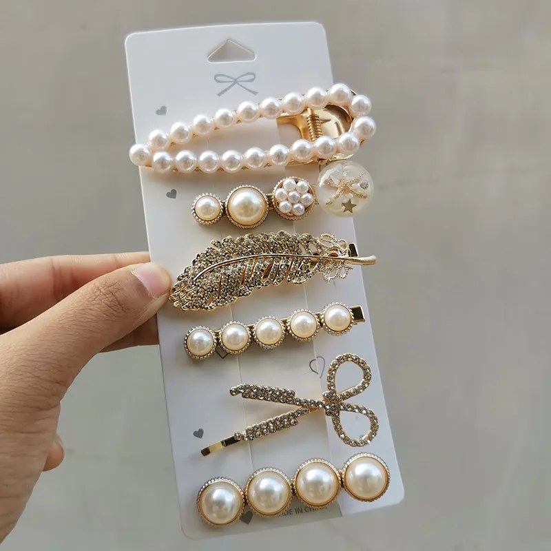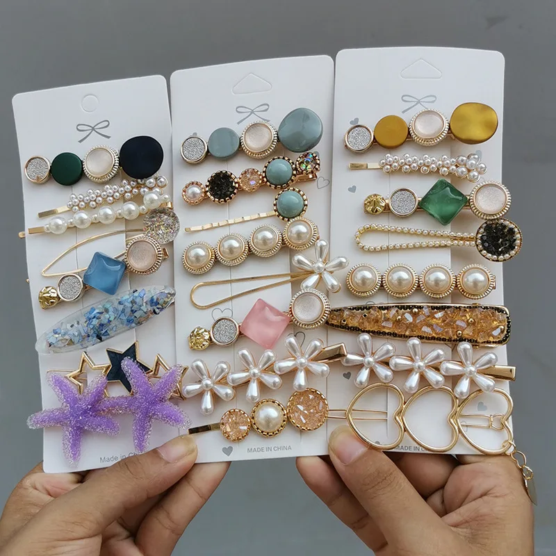 Épingles à cheveux en perles pour femmes et enfants, pinces mignonnes et douces, biscuits, fleur, paillettes, barrettes de princesse, accessoires pour cheveux, ensemble de 5 à 8 pièces |