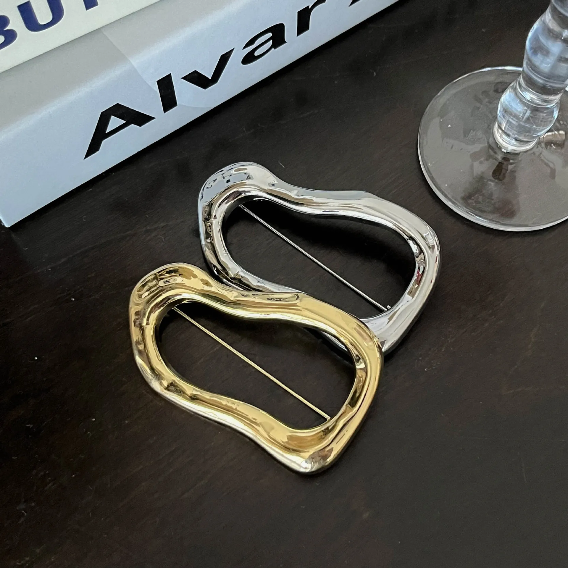 Épingles à revers en forme d’anneau géométrique ajouré de luxe exquis pour femmes, accessoires décoratifs élégants et élégants
