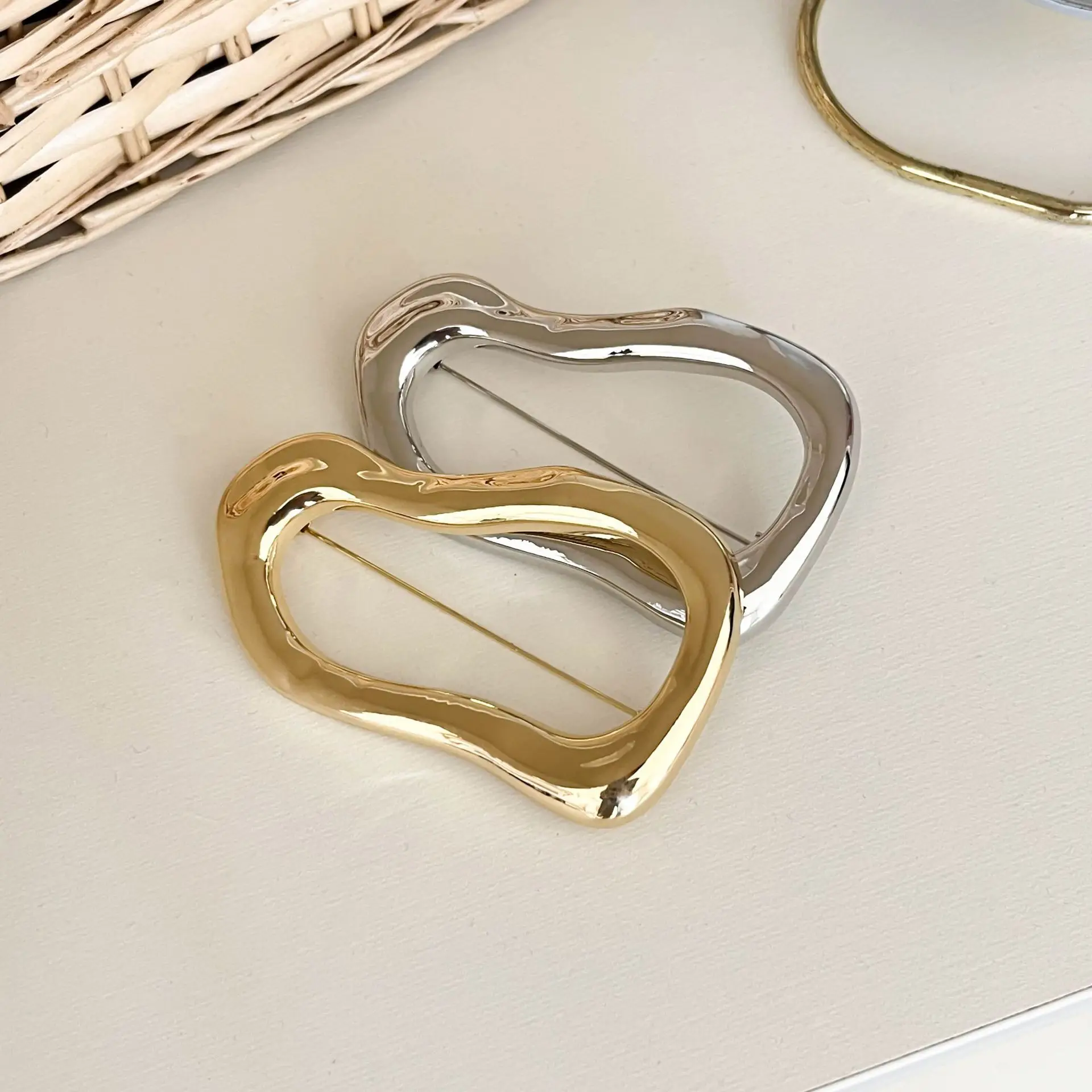 Épingles à revers en forme d'anneau géométrique ajouré de luxe exquis pour femmes, accessoires décoratifs élégants et élégants |