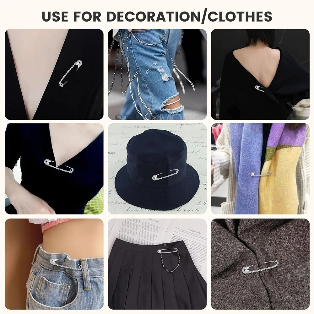 Épingles de sûreté en strass ton argent, 10/5 pièces, grandes épingles de sûreté, finition Nickel, épingles pour vêtements, épingles de sûreté assorties pour l'artisanat d'art |