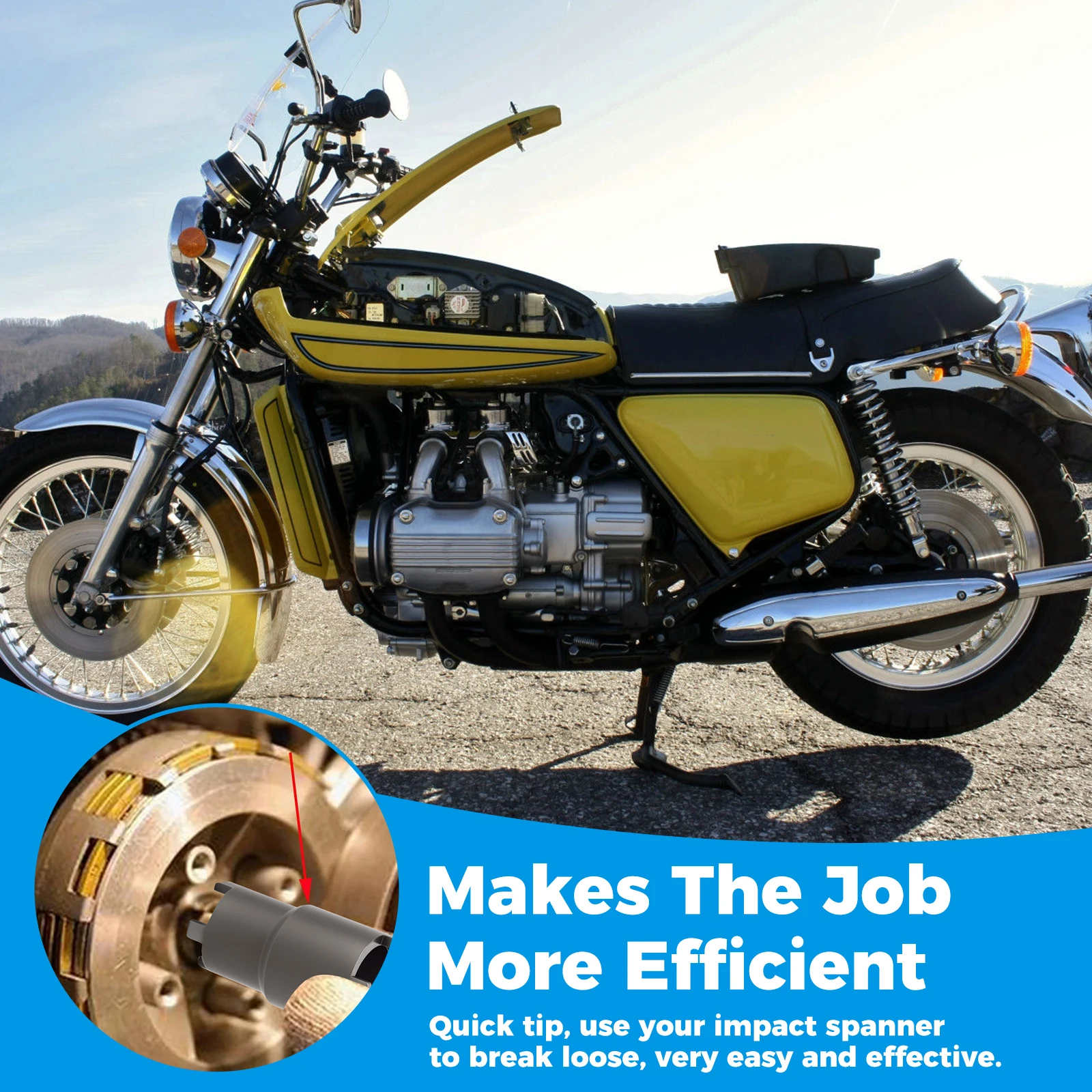 - Conçu pour un serrage efficace et sécurisé de l'écrou de blocage d'embrayage