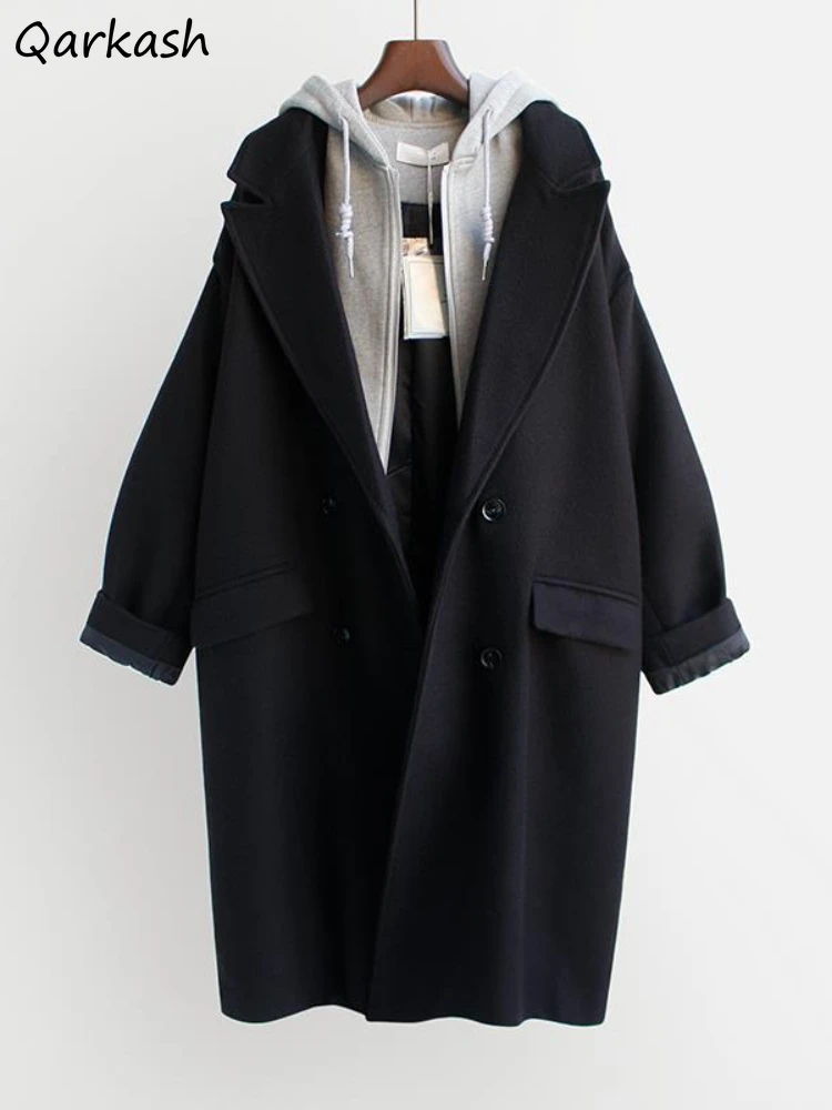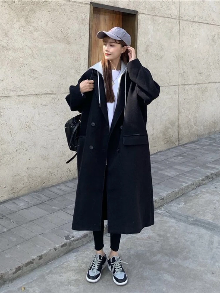 Faux mélange de deux pièces à capuche pour femmes, optique tout match, chaud, style long, mode étudiante coréenne, décontracté, hiver |
