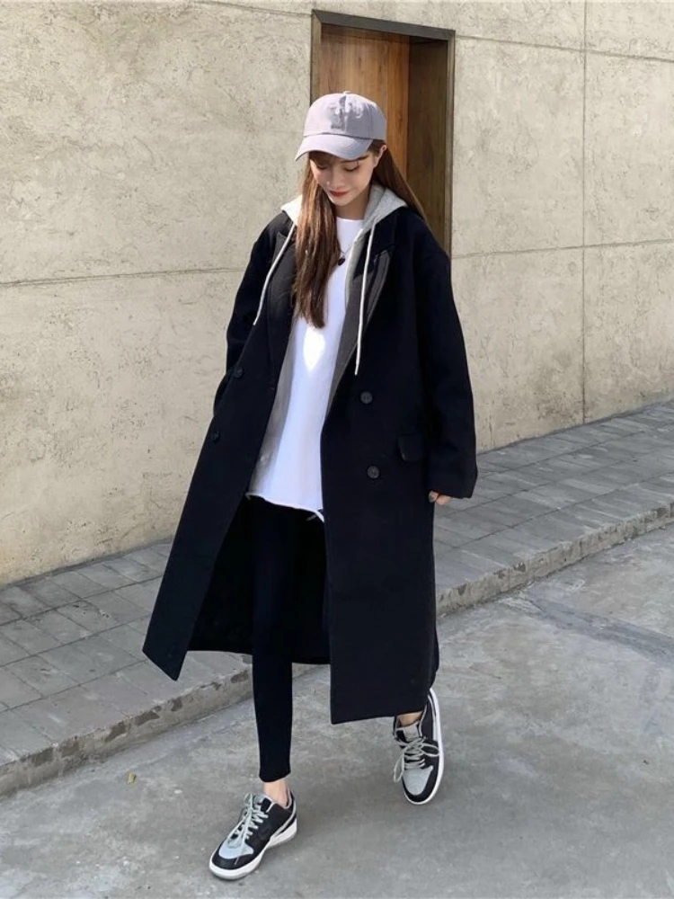 Faux mélange de deux pièces à capuche pour femmes, optique tout match, chaud, style long, mode étudiante coréenne, décontracté, hiver